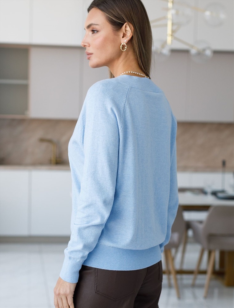 Размер товара на первом фото: 42 Джемпер тонкой вязки выполнен из хлопка с добавлением кашемира. Модель с V-вырезом свободного силуэта. Мягкая и очень приятная пряжа в рубчик совершенно не колется, сохраняет тепло при этом не перегревая, гарантируя безупречный комфорт.
