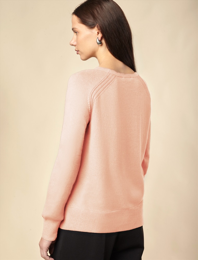 Размер товара на первом фото: 42 Джемпер тонкой вязки выполнен из хлопка с добавлением кашемира. Лаконичная модель с круглым вырезом дополнена декоративными швами и металлическим логотипом бренда. Мягкая и очень приятная пряжа совершенно не колется, сохраняет тепло при этом не перегревая, гарантируя безупречный комфорт.