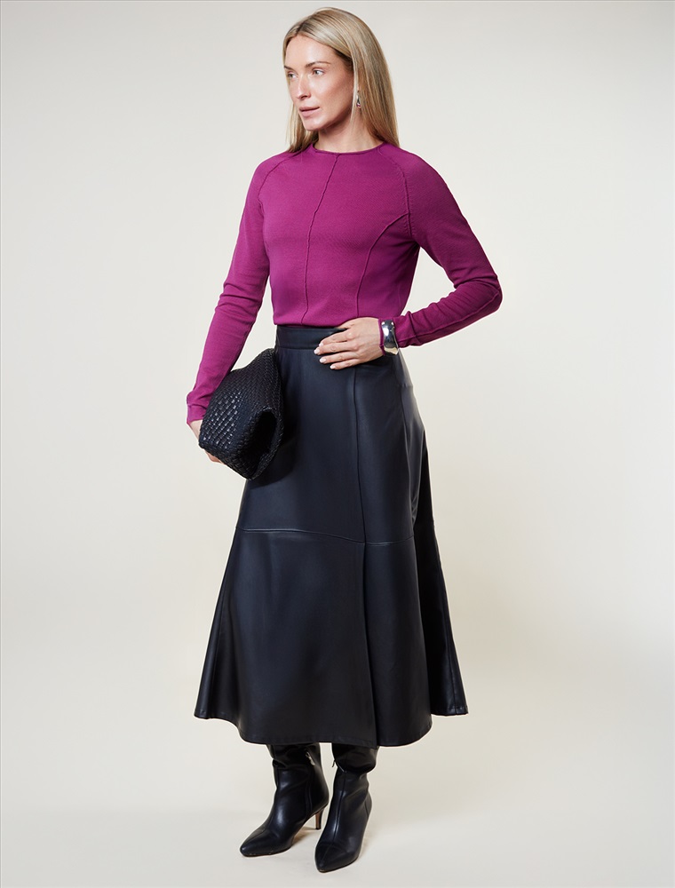 Размер товара на первом фото: 42 Джемпер тонкой вязки выполнен из мягкой хлопковой пряжи. Модель с декоративными швами идеально сидит по фигуре подчеркиваяч изгибы тела. Подходит для любой фигуры и впишется в любой гардероб. Изделие дополнено металлическим логотипом бренда.