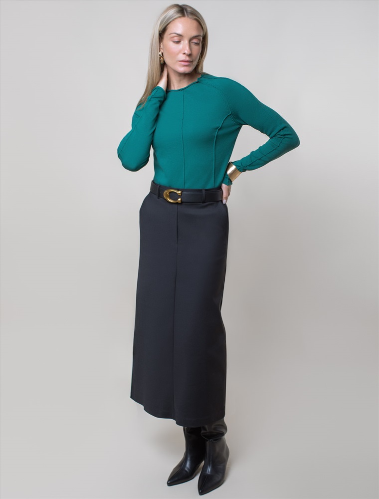 Джемпер тонкой вязки выполнен из мягкой хлопковой пряжи. Модель с декоративными швами идеально сидит по фигуре подчеркиваяч изгибы тела. Подходит для любой фигуры и впишется в любой гардероб. Изделие дополнено металлическим логотипом бренда.