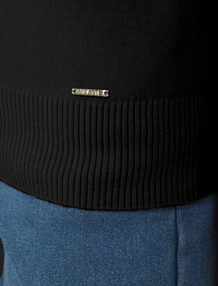 Параметры модели на первом фото: Рост 170, бюст 89, талия 63, бедра 92 Размер товара на первом фото: 42 Джемпер тонкой вязки выполнен из мягкой хлопковой пряжи. Модель свободно сидит по фигуре не сковывая движений. Подходит для любой фигуры и впишется в любой гардероб. Изделие дополнено металлическим логотипом бренда. Комментарии к товару