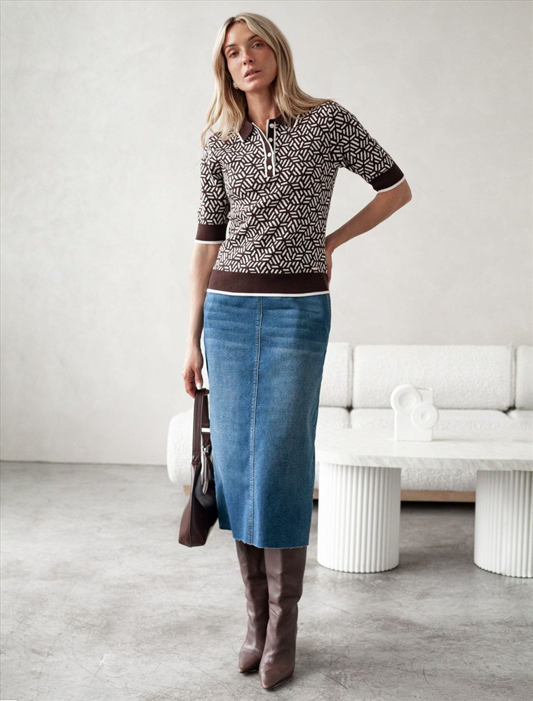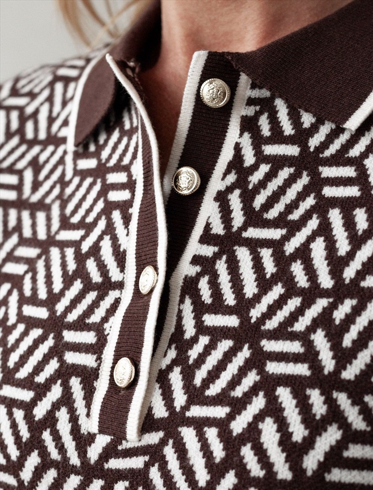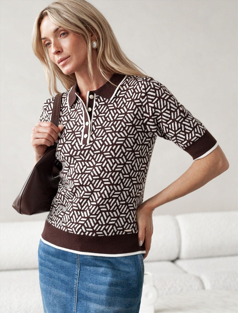 Плотность: 12 GG Параметры модели на первом фото: Рост 172, бюст 88, талия 64, бедра 88 Джемпер жаккардовой вязки выполнено из нежной пряжи на основе вискозы с добавлением кашемира. Модель прямого силуэта с застежкой планкой как у поло. Фигурные золотистые пуговицы вносят изысканности и роскоши. Изделие приятно ощущается на теле и поддерживает комфортный микроклимат. Сочетается в комплекте total-look с жакетом D31.150 Комментарии к товару