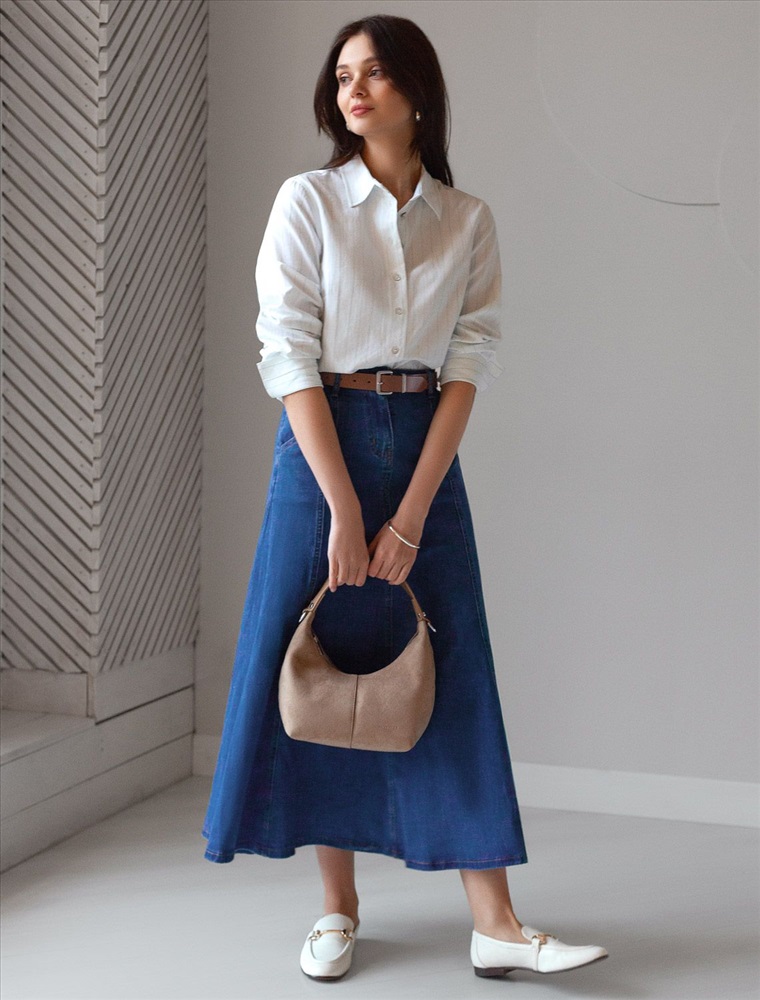 Повседневная джинсовая юбка практична и подходит для разных образов и легко сочетается с верхней одеждой и обувью, обеспечивая универсальность и актуальность гардероба особенно в осенний сезон и остается незаменимой в любое другое время года . Продуманный крой длиной юбки с современными деталями и двумя карманами по бокам добавляют любому образу уникальности и изысканности. Универсальную широкую юбку можно сочетать с разными верхами— от классических блузок до casual-футболок. Такая стильная юбка станет базовой вещью, способной подчеркнуть индивидуальность и чувство стиля без лишних усилий.