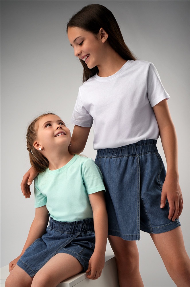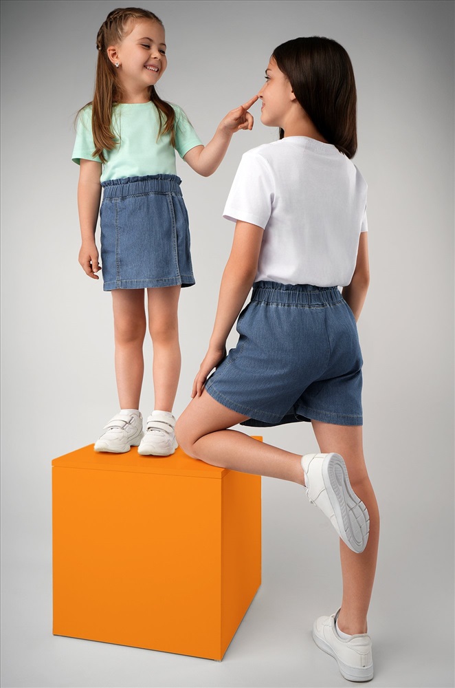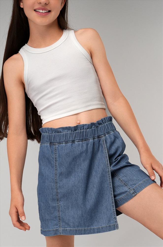 Юбка или шорты? А почему бы не всё сразу! Джинсовая юбка-шорты для девочки и девочки подростка идеальна для повседневных образов. В ней удобно бегать, прыгать и отдыхать.