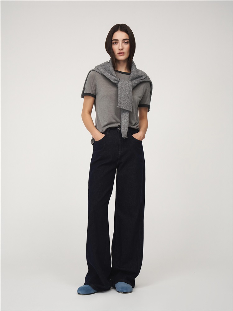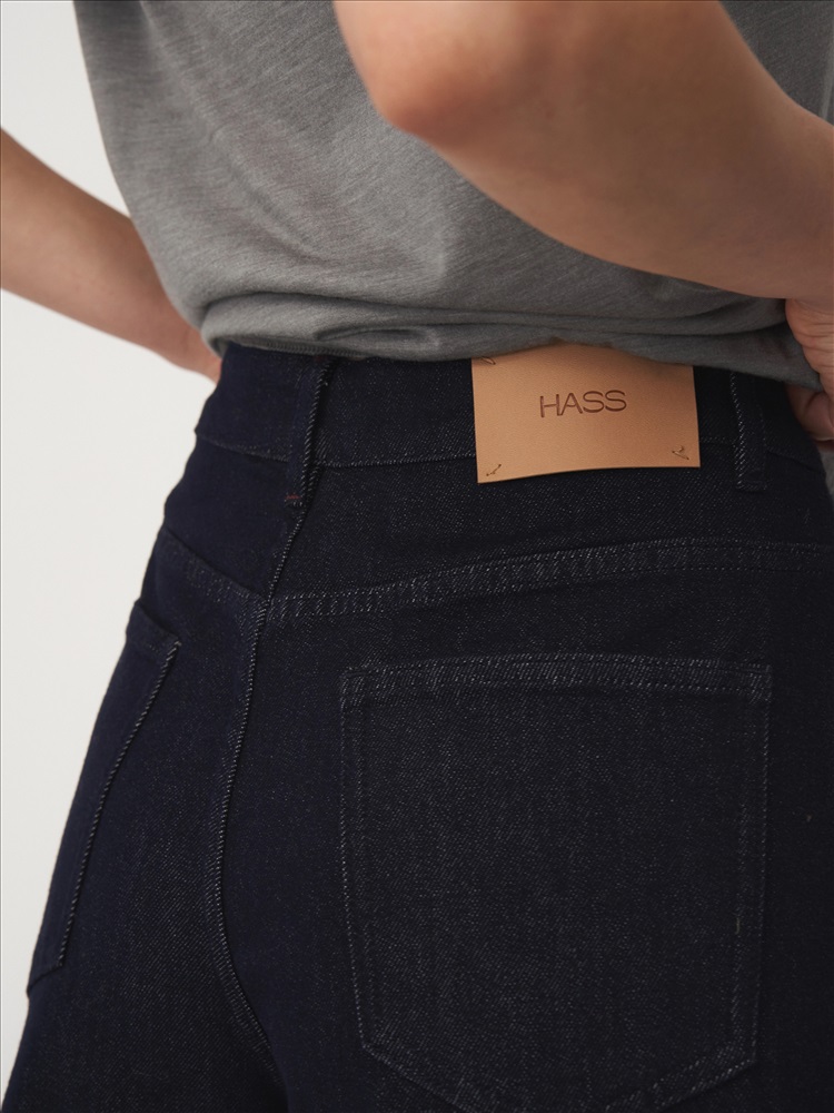 Видео: https-//hassfashion.ru/upload/iblock/305/2dz7ysx44zyanz0o02uxe2d2767qt14y.mp4 осень-зима 90% Хлопок, 10% Спандекс Джинсы широкие с посадкой на уровне талии. По поясу шлевки для ремня. По передней части классический гульфик с застежкой на молнию и пуговицу. Сзади кокетка, накладные карманы и брендированный патч HASS. Выполнены из хлопка (90%) и спандекса, что обеспечивает комфорт и долговечность. Представлены трендовом «сыром» дениме синего цвета.