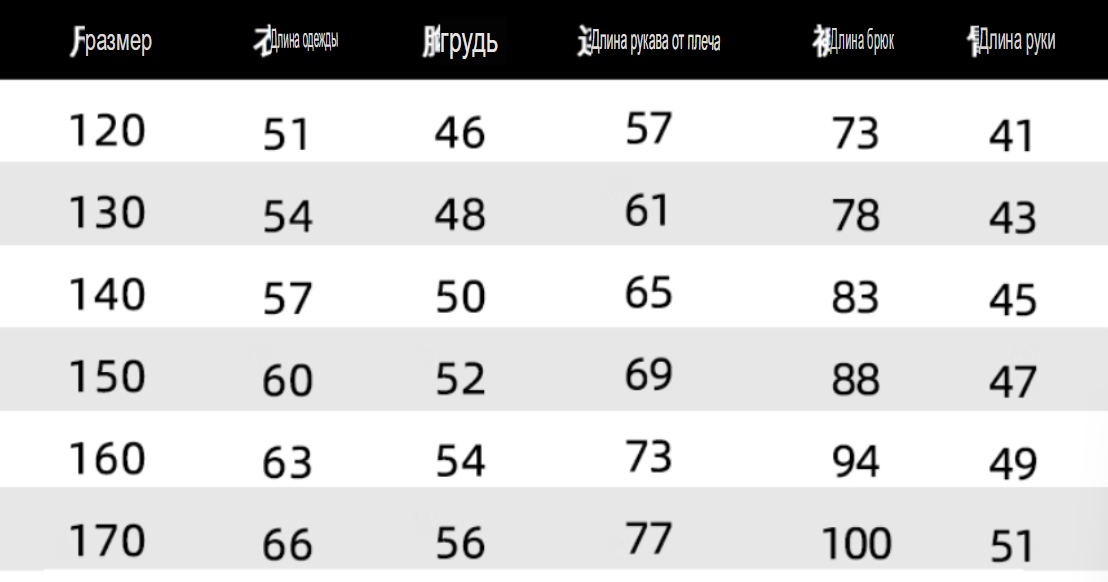 Размер: 120, 130, 140, 150, 160, 170