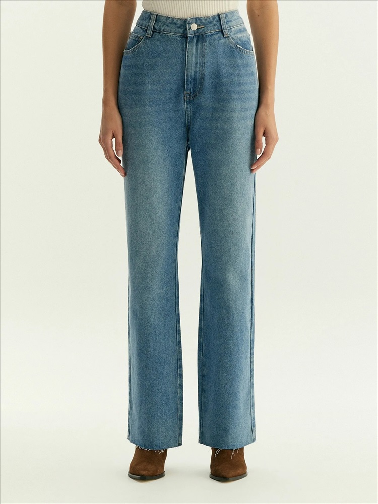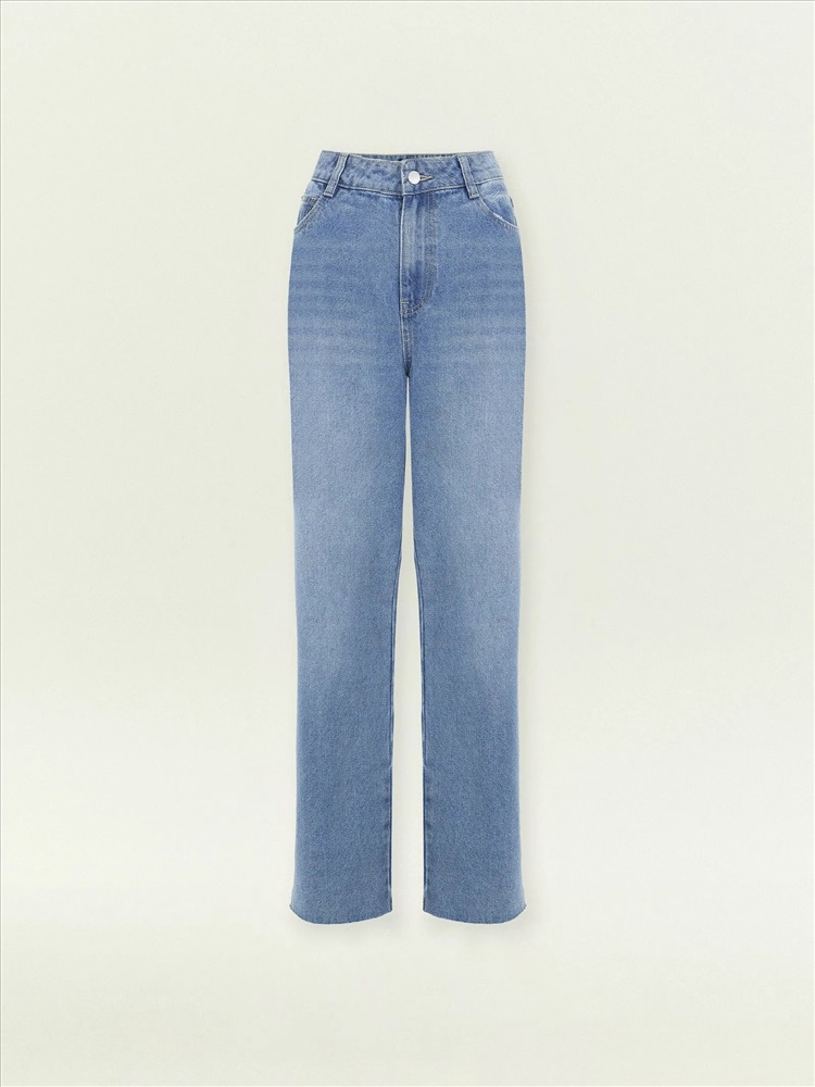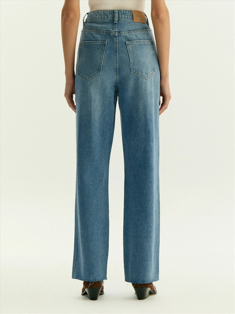 Джинсы в классическом сине-голубом цвете с необработанным краем. Визуально вытягивают силуэт, делают его плавнее. Посадка мom fit удачно смотрится на разных типах фигуры. По длине модель особенно хорошо подходит на средний рост. Джинсы выполнены из качественного хлопка приятной фактуры.
