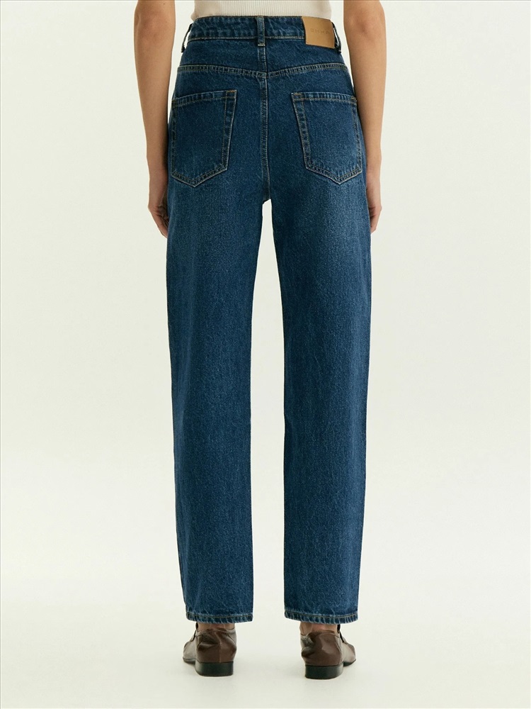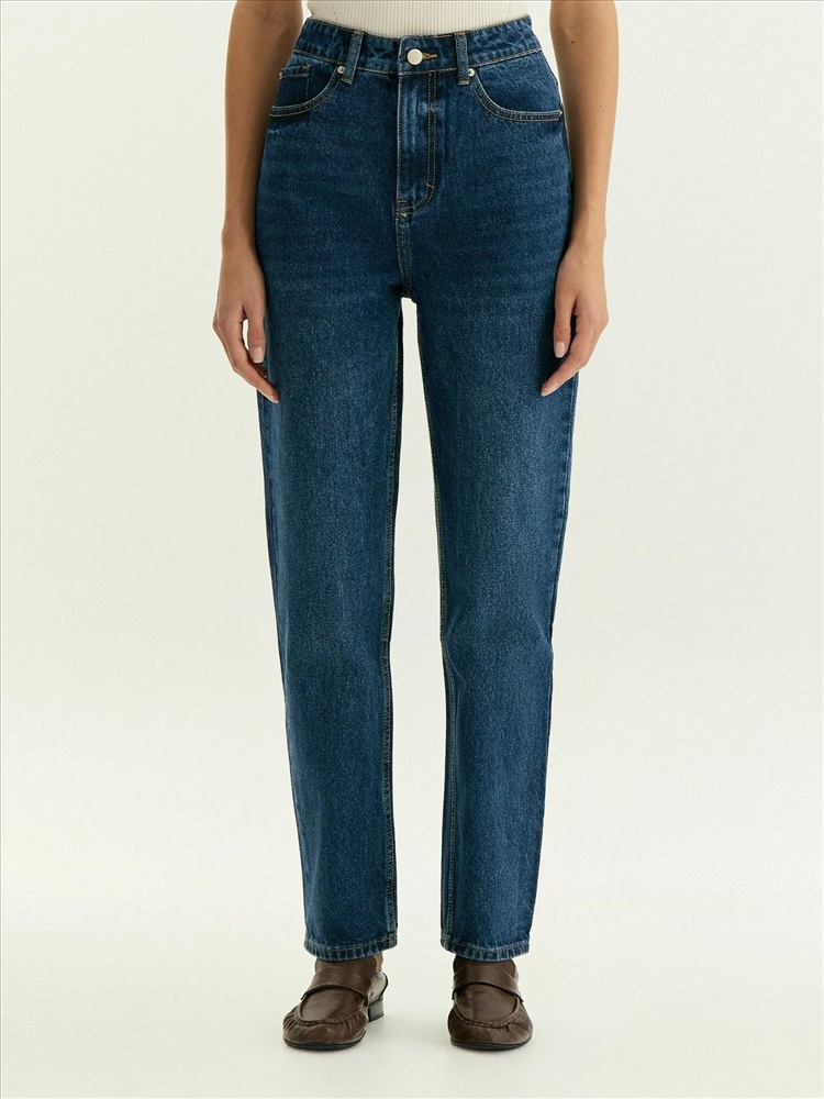 Джинсы в синем цвете визуально вытягивают силуэт, делают его плавнее. Посадка мom fit удачно смотрится на разных типах фигуры. Плотный деним с практичным составом комфортно садится, хорошо сохраняет форму, устойчив к износу и меньше мнётся. Джинсы сочетаются с любым базовым и нарядным низом.