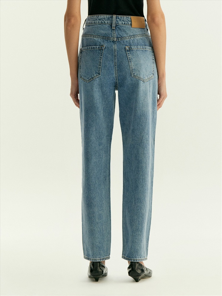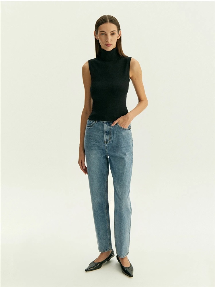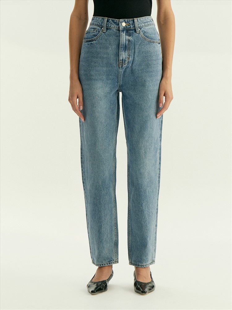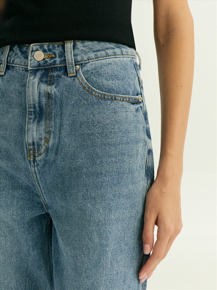 Джинсы в голубом цвете визуально вытягивают силуэт, делают его плавнее. Посадка мom fit удачно смотрится на разных типах фигуры. Плотный деним с практичным составом комфортно садится, хорошо сохраняет форму, устойчив к износу и меньше мнётся. Джинсы сочетаются с любым базовым и нарядным низом.