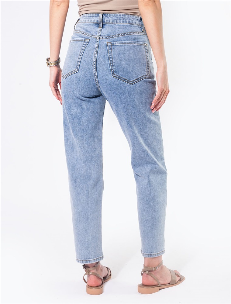Джинсы mom-fit из эластичного денима. Зауженный крой подчеркивает фигуру, а высокая посадка акцентирует талию. Подходят для любого типа фигуры. Модель дополнена высококачественной фурнитурой. Джинсы - идеальный и беспроигрышный вариант для образов в духе streetstyle.