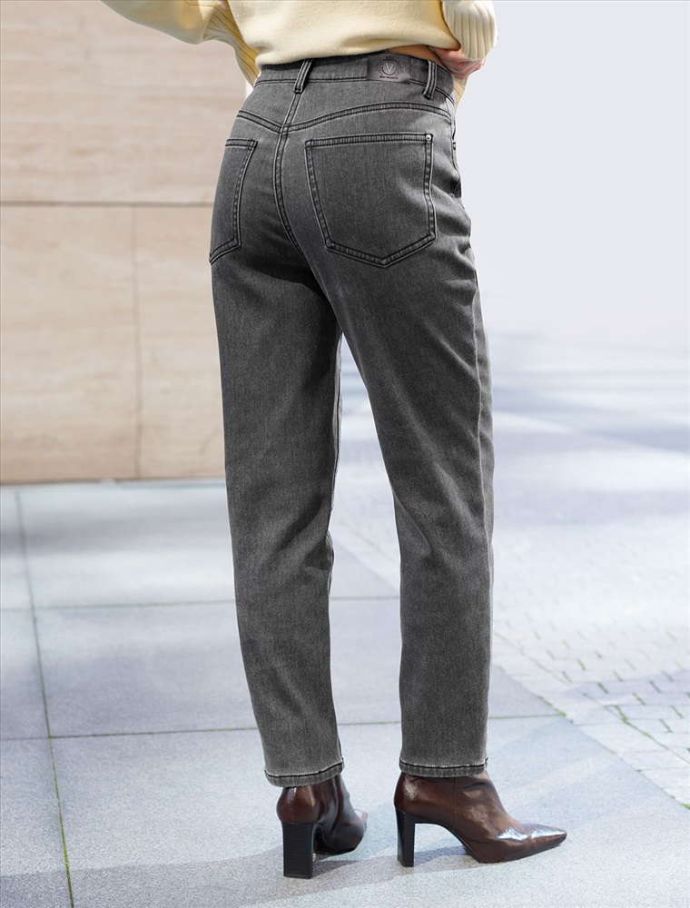 Джинсы mom-fit из эластичного денима на флисе