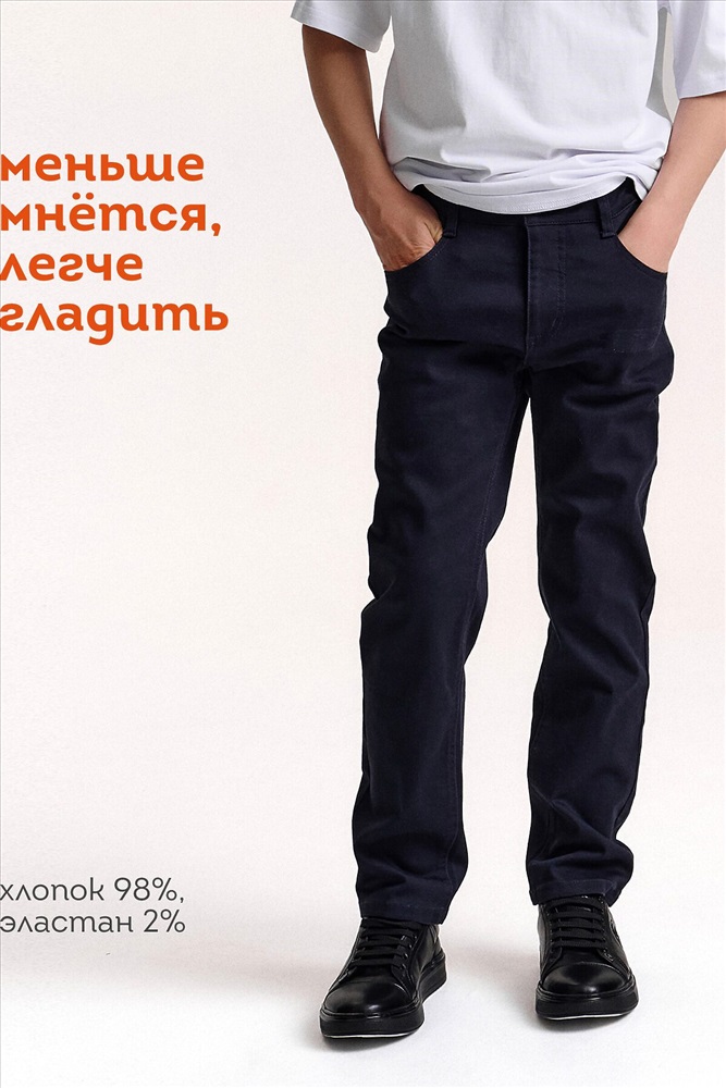 ID товара: 1188909 Состав: 98% Хлопок, 2% Эластан Сезон: Демисезон Длина: Полная Фасон: Прямые Вид застежки: Молния/пуговица Тип карманов: Накладные, с отрезным бочком Основная ткань: Хлопок Стиль: Повседневный Страна бренда: Россия Страна производства: Китай Джинсы для школы — удобно и стильно каждый день Эти джинсы сделаны с учётом комфорта и школьных требований. Свободный объём в бедрах не стесняет движения, а слегка зауженный низ придаёт аккуратный и современный вид. Пояс из той же ткани с внутренним шнурком — легко регулируется по талии, так что джинсы будут сидеть идеально, даже если фигура ребёнка меняется. Спереди — удобные боковые карманы в швах, сзади — классические накладные карманы. Спинка с кокеткой для лучшей посадки, а шлевки на поясе позволяют добавить ремень. Без лишних деталей и отворотов — такие джинсы подойдут для школы и повседневной носки. Выбирайте нужный размер по таблице размеров на фото. Цвет товара на экране вашего устройства может отличаться от цвета изделия вживую. Комментарии к товару
