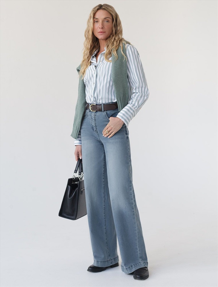 Размер товара на первом фото: 42 Стильные джинсы трубы синего цвета прямого кроя выполнены из эластичного денима, что делает их особенно удобными для повседневной носки. Декоративная стирка добавляет современный акцент и подчеркивает современный дизайн. Джинсы правильного кроя визуально вытягивают силуэт, благодаря эластану в составе аккуратно садятся на любую фигуру, подчеркивая достоинства, а обеспечивают максимальный комфорт в течение дня, не сковывая движения. Широкая размерная линейка подходит для разных типов фигур: свободные джинсы комфортны как для обладательниц пышных форм, так и для худеньких. Вы сможете подабрать джинсы на низкий или высокий рост. Плотные джинсы идеально держат форму даже при активном движении и не вытягиваются после долгой носки. Качественная фурнитура, практичные карманы и контрастная строчка делают эти джинсы премиальными. Широкий подгиб добавляет актуальности — такой тренд отлично сочетается как с обувью на каблуке, так и на плоском ходу. Благодаря универсальному дизайну джинсы легко комбинируется с разными элементами гардероба: свитерами для прохладной осени или легкими блузками в межсезонье. Комментарии к товару