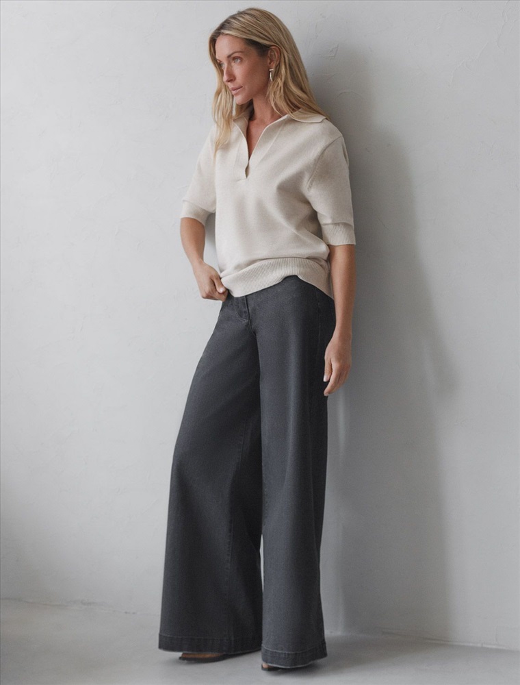 Стильные расклешенные джинсы трубы насыщенного черного цвета из эластичного денима созданы для современного образа и максимального комфорта. Плотный премиальный материал обеспечивает надежность и приятные ощущения при носке, а добавление эластичных волокон делает посадку особенно удобной. Высокая посадка и расширенный крой к низу визуально вытягивает рост и подчеркивает достоинства, делая силуэт женственным, а декоративная стирка добавляет акцент. Эти широкие джинсы - оличное решение для девушек размера полюс сайз. Детали продуманы до мелочей: мягкий пояс не сдавливает живот, задние карманы и шов расположены на правильном уровне, что бы визуально подтянуть фигуру, а натуральный материал сохраняет форму после длительной носки и частых стирок. Джинсы трубы подходят для высоких девушек и женщин, а так же не высоких, представлена различная ростовка.