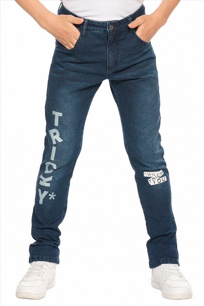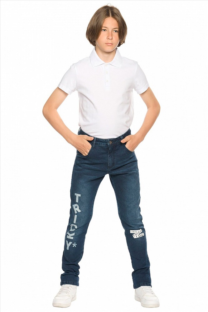 ID товара: 685121 Состав: 65% Хлопок 33% Полиэстер 2% Эластан Сезон: Осень/Зима Длина: Длинная Фасон: Повседневный Вид застежки: Молния, +Пуговица Рисунок: Надпись Тип карманов: Накладные Основная ткань: Хлопок Стиль: Повседневный Страна бренда: Россия Страна производства: Китай Утепленные джинсы для мальчиков умеренного объёма с 5 ю карманами и металлической фурнитурой. На правой брючине мягкий принт, надпись Хитрый, на левой rubber принт, надпись Я обхитрю тебя. Пояс из рибаны с дополнительной регулировкой внутренним шнуром. Комментарии к товару