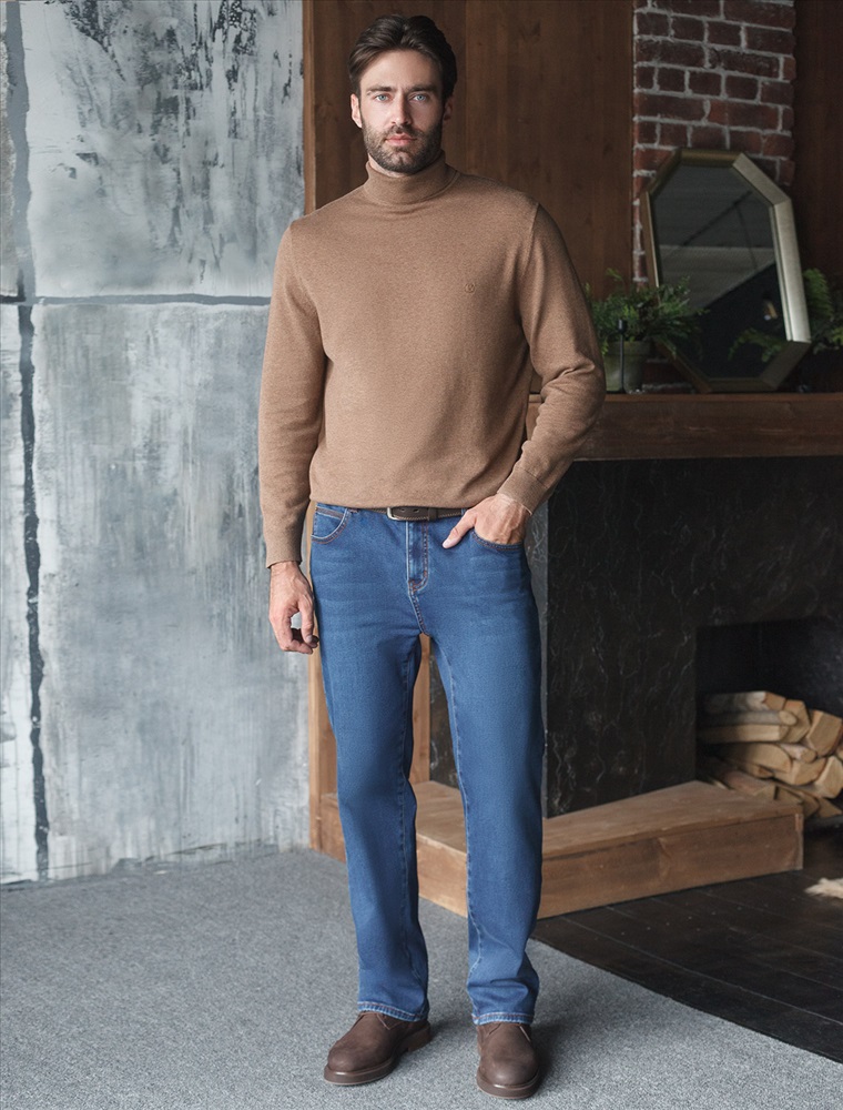 Теплые джинсы синего цвета прямого кроя созданы для мужчин, ценящих комфорт и стиль даже в холодную осень или зиму. Повседневные джинсы выполнены из эластичного денима, легко тянутся и не сковывают движений, обеспечивая правильный баланс между свободой и удобной посадкой Regular Fit. Внутри мягкий флис дарит приятные ощущения, надежно согревают в холодную погоду и делают каждую прогулку максимально комфортной. Свободный классический крой подходит на разныетипы фигур, в том числе и большие размеры. Правильная посадка гарантирует удобство и комфортные ощущения при носке. Джинсы дополнены пятью карманами и брендированным патчем на поясе. Контрастная прострочка и легкая декоративная стирка гармонично сочетаются с классическим цветом джинс, добавляя стильный акцент в образ. Джинсы удобные на все случаи жизни: они сохраняют форму, не деформируются при носке и обеспечивают оптимальную теплоизоляцию. Утепленный материал создает дополнительный уровень защиты от холода, что делает изделие надежным выбором на зиму и осень. Комфортные брюки отлично сочетаются с разными образами благодаря универсальному дизайну. Они подходят тем, кто ценит практичность и стиль без компромиссов по качеству.