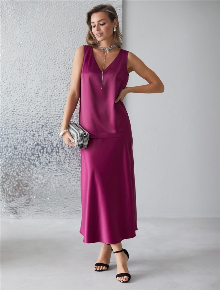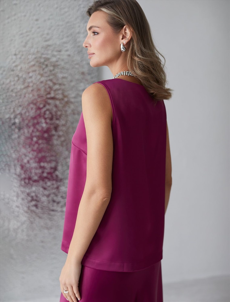 Этот топ идеально подойдет для создания стильного ансамбля на вечерние мероприятия или важные события. Благодаря сочетанию элегантности и практичности, такая стильная блузка без рукавов станет незаменимой частью гардероба для женщин, которые ценят качество и комфорт в одежде. Благородный блеск сатина добавляет нотку роскоши в повседневный гардероб и гармонично сочетается с разными стилями одежды: офисными брюками, джинсами или юбками. V-образный вырез визуально вытягивает шею и создает элегантный акцент в зоне декольте, делая образ более открытым и современным.