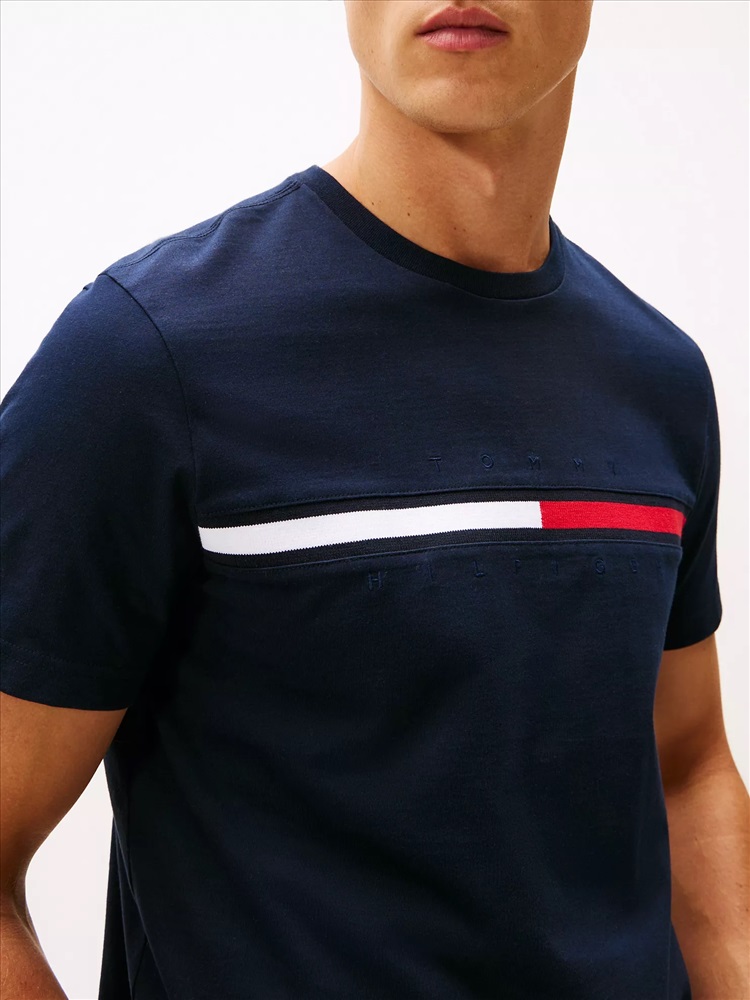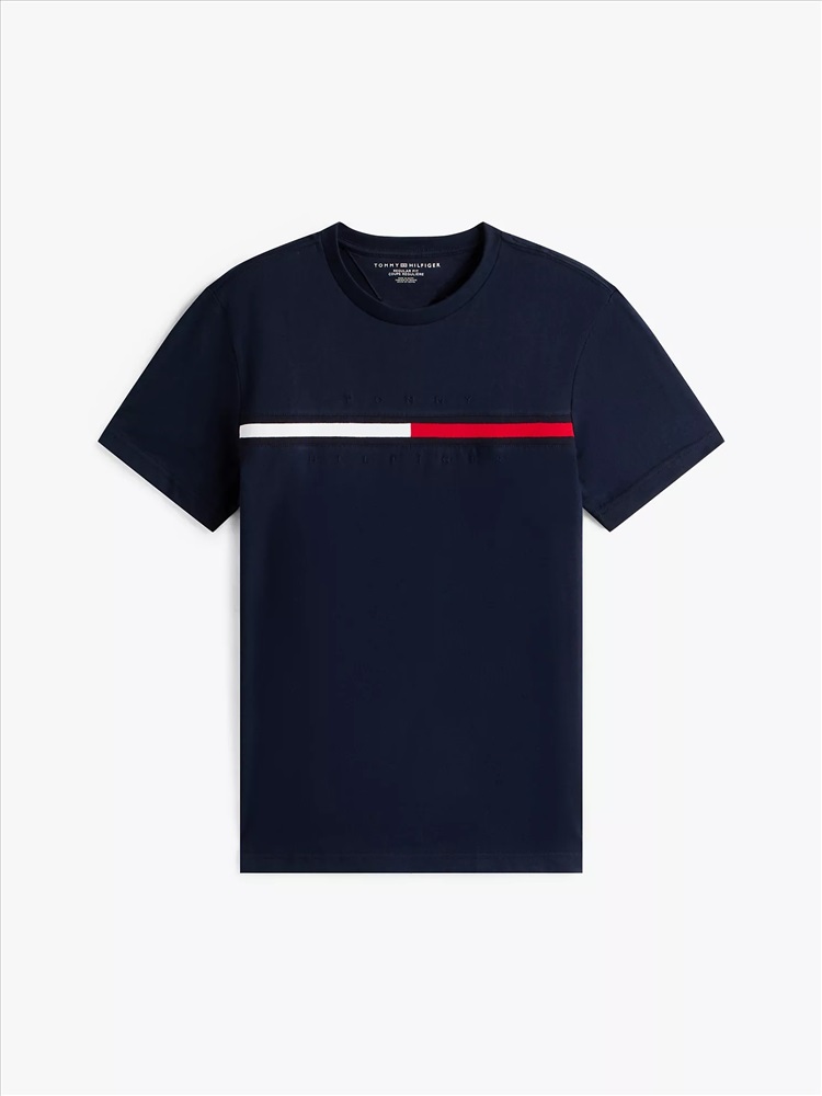 Tommy Hilfiger men's T-shirt. Made from lightweight cotton jersey, known for its breathability and stretch, our comfortable crewneck tee is cut in an easy fit and finished with our embroidered flag logo.