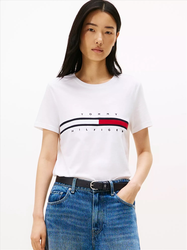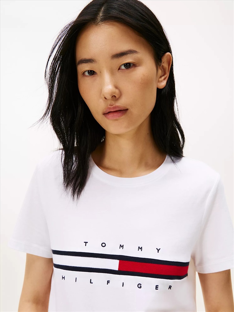 Tommy Hilfiger women's T-shirt. Made from pure cotton and embroidered with our flag stripe logo, our tee is a soft, comfortable layer.
