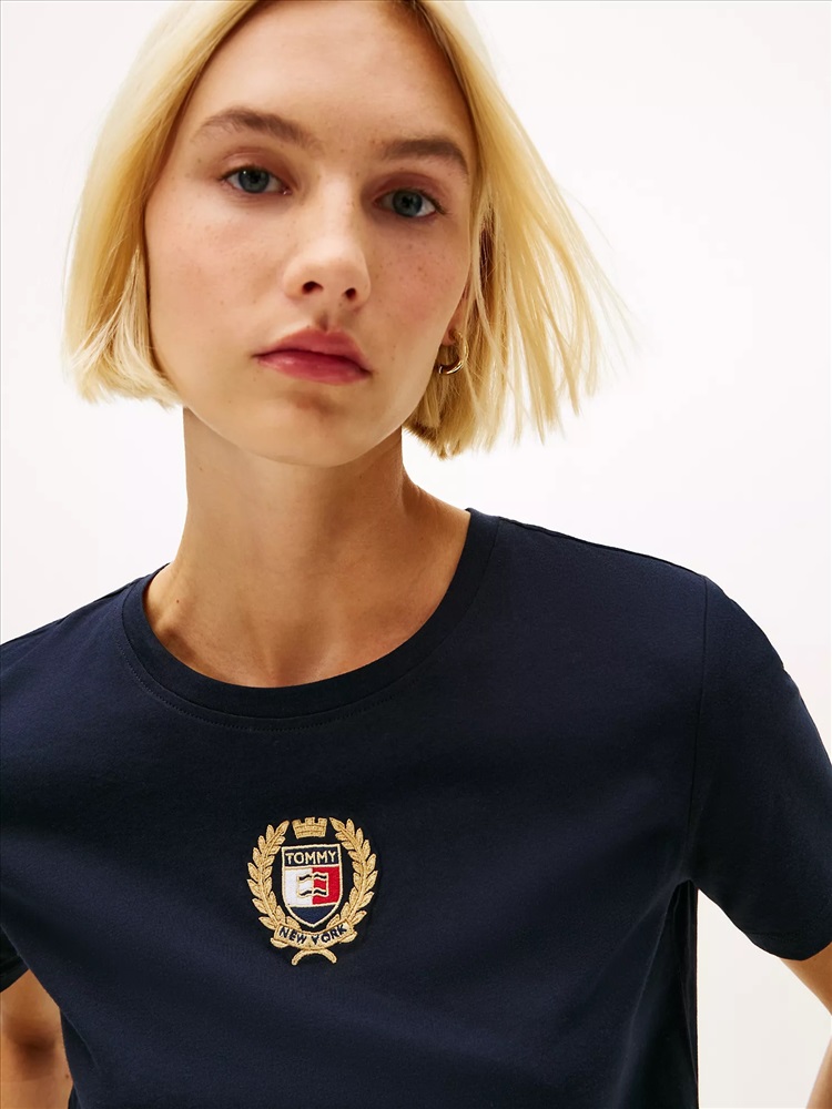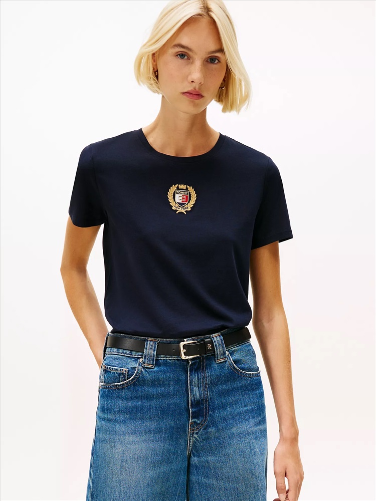 Tommy Hilfiger women's T-shirt. Made from pure cotton and designed with our embroidered laurel leaf logo, our tee is a soft, comfortable layer.