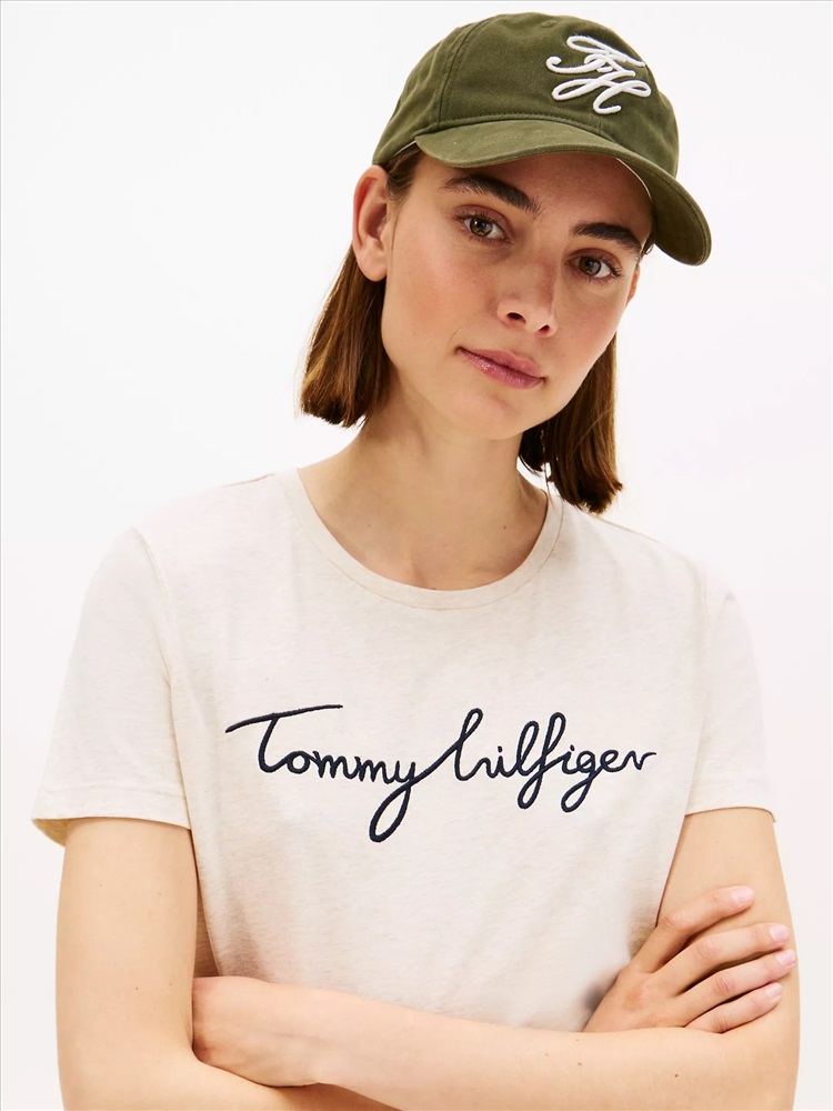 Tommy Hilfiger women's T-shirt. Made from soft, lightweight cotton, our signature logo crewneck tee adds Hilfiger style to your casual wardrobe.
