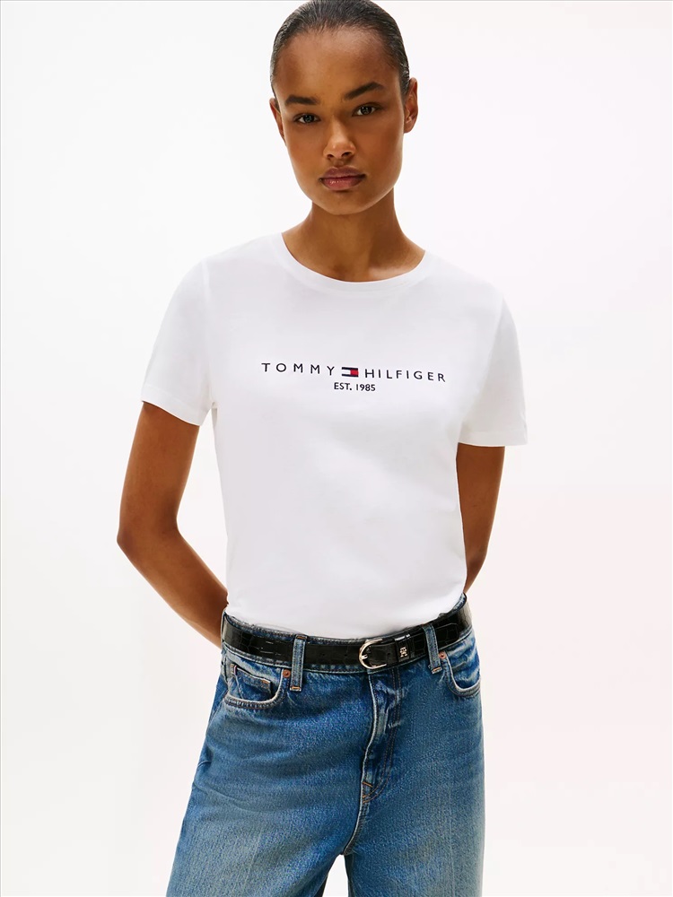 Tommy Hilfiger women's T-shirt. Made from pure cotton and embroidered with our classic Tommy logo, our tee is a soft, comfortable layer.