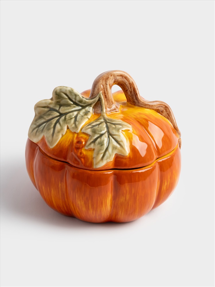 Емкость для хранения, 13х12 см, 520 мл, керамика, оранжево-зеленая, Тыква, Bright pumpkin