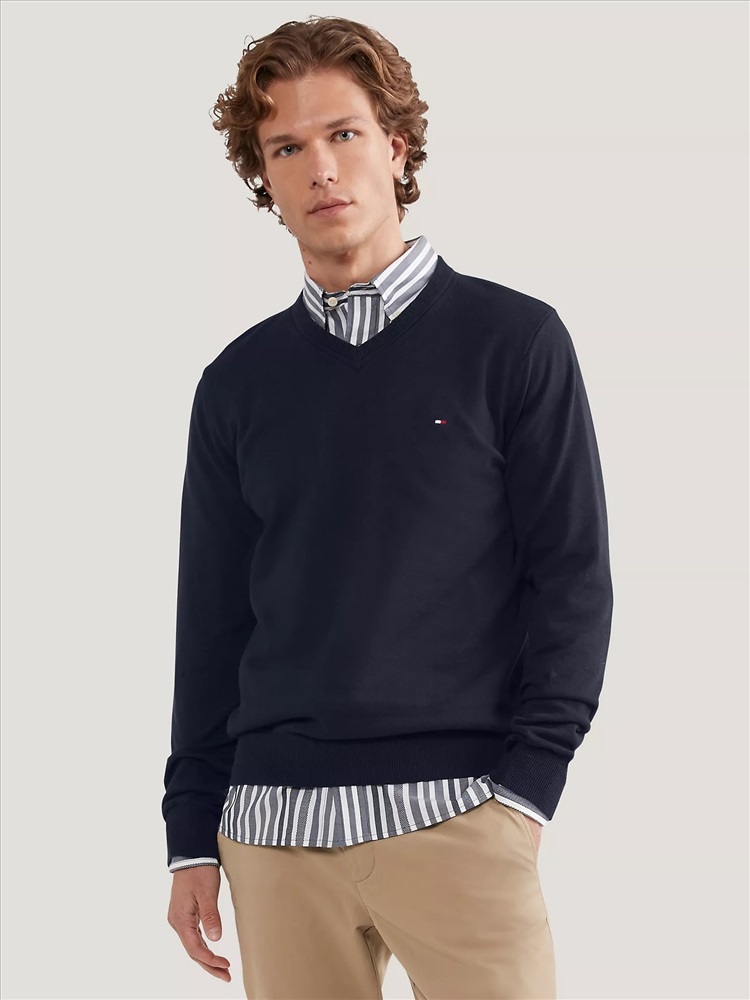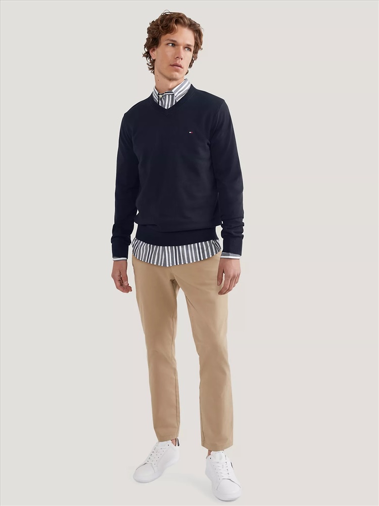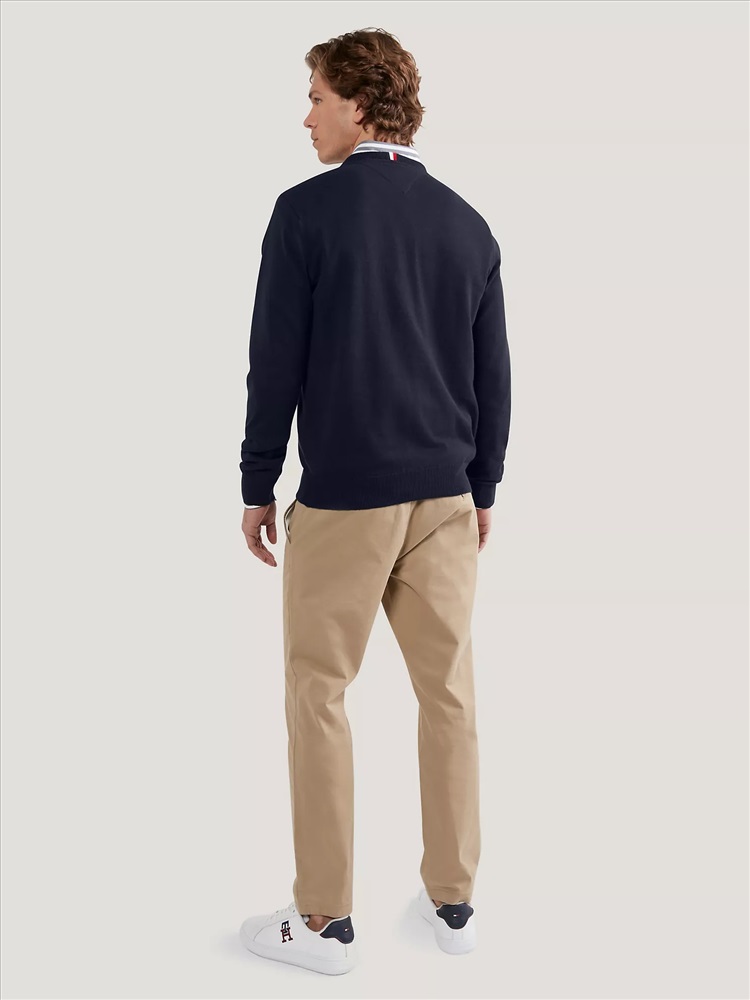 Tommy Hilfiger men's sweater. Made from premium cotton in an easy fit, our V-neck sweater is a soft, comfortable layer.
