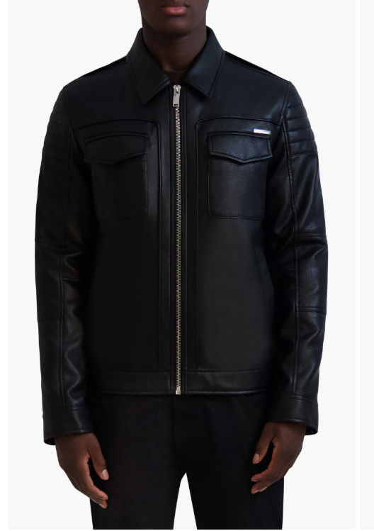 Faux Leather Trucker Jacket KARL LAGERFELD PARIS