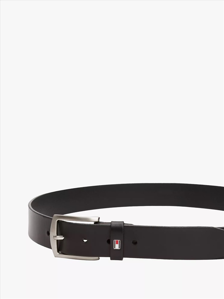 Tommy Hilfiger men's belt. Our leather belt features a stainless steel buckle and our iconic flag logo at the loop.