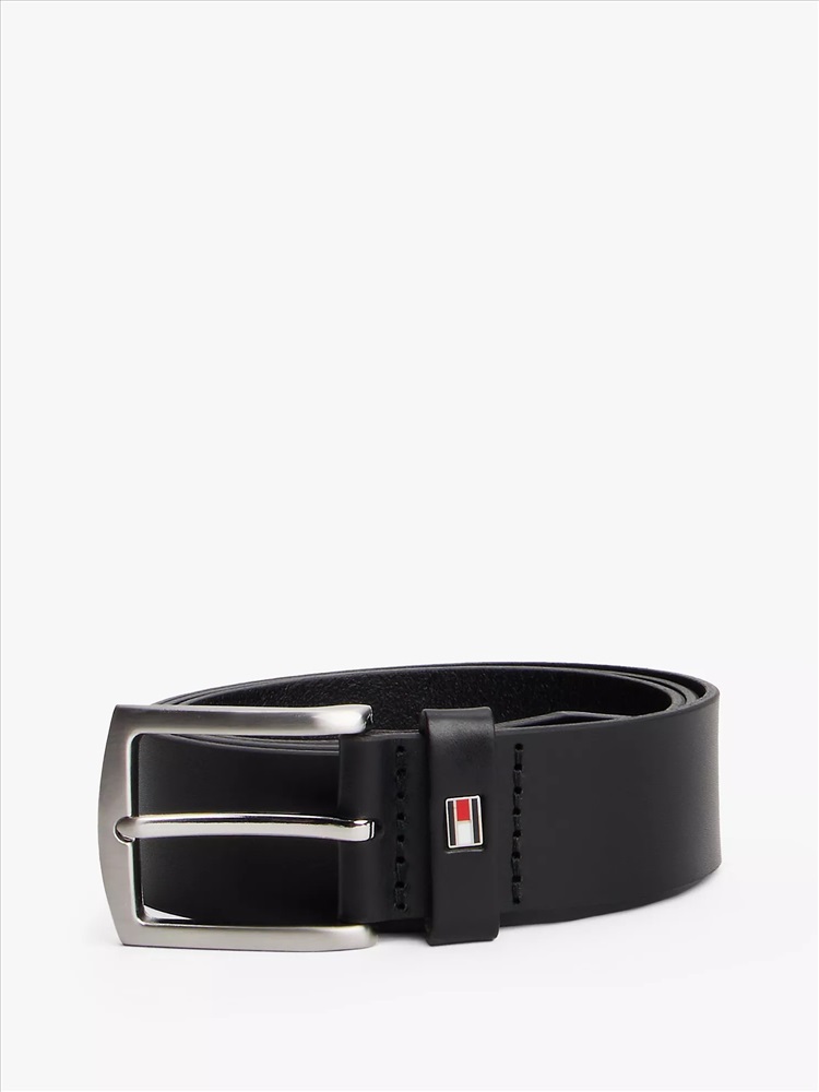 Tommy Hilfiger men's belt. Our leather belt features a stainless steel buckle and our iconic flag logo at the loop.