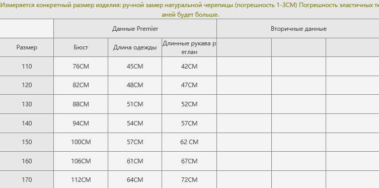 Размер: 110, 120, 130, 140, 150, 160, 170