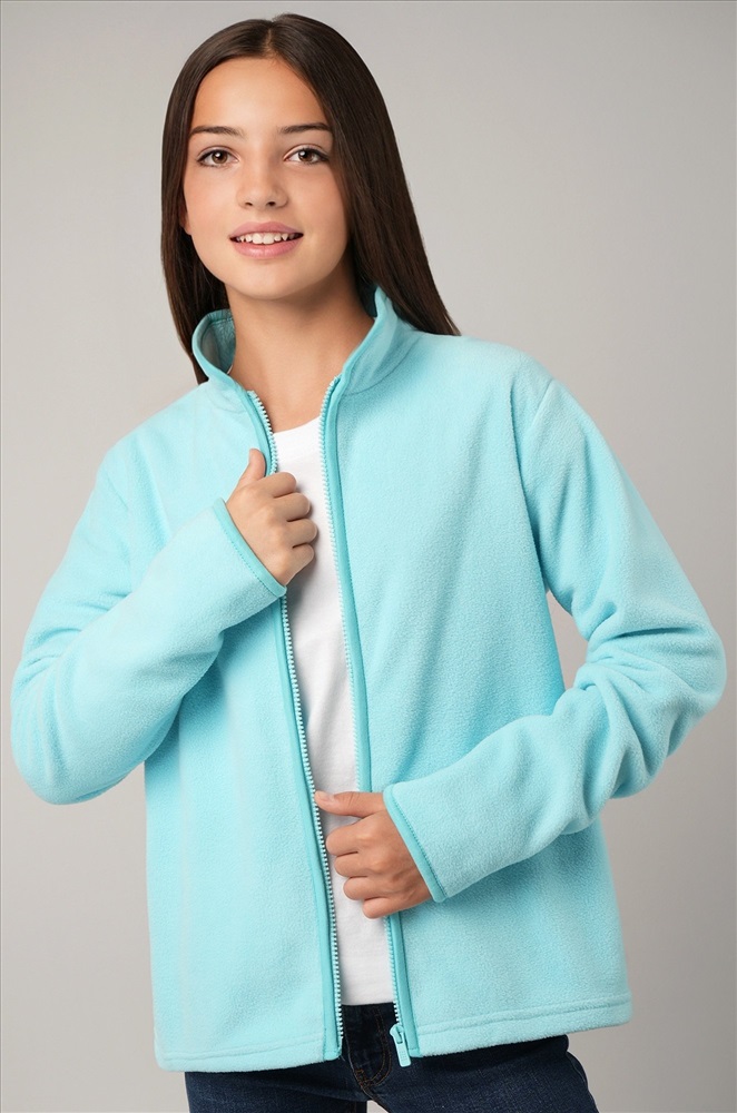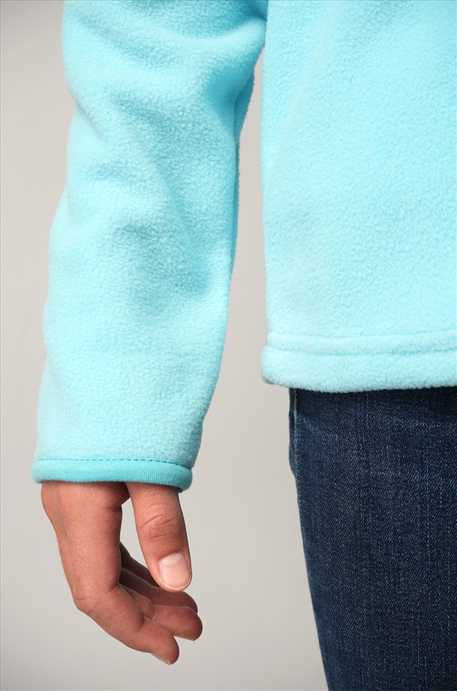 — флисовый джемпер ментолового цвета не требует глажки и быстро сохнет.
