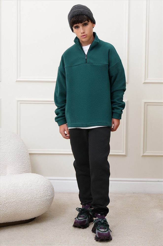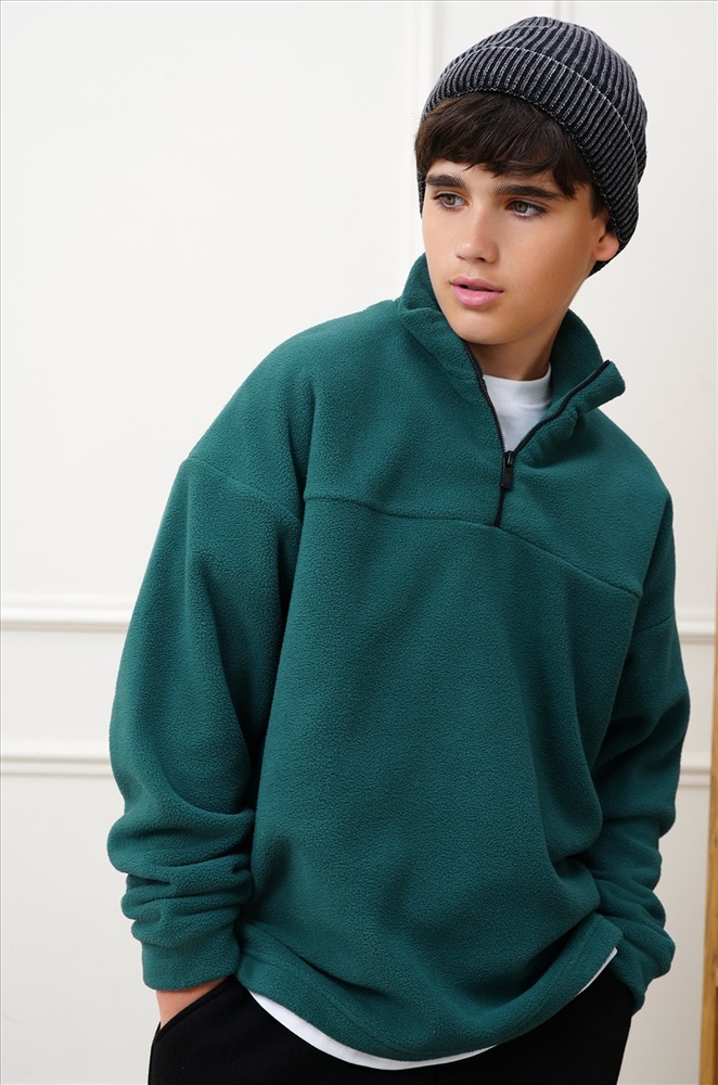 Флисовая толстовка для мальчиков и мальчиков подростков создана для комфорта и тепла в прохладные дни. Свободный крой и воротник на молнии делают детскую олимпийку удобной для школы, прогулок и активного отдыха осенью. Зеленая толстовка на молнии станет стильным акцентом в повседневном образе.