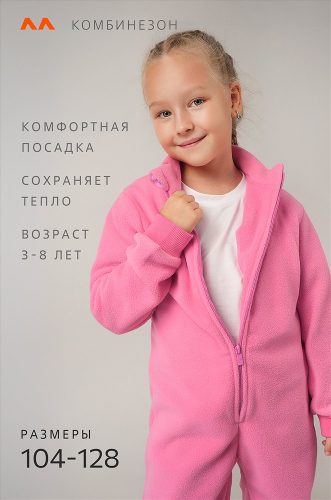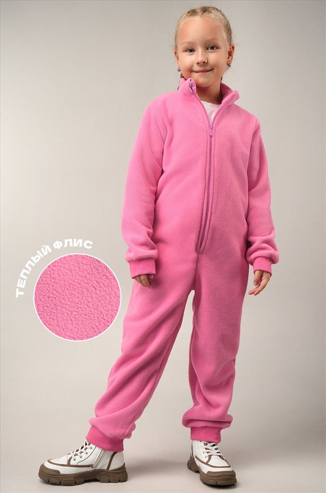 Преимущества: — флисовый комбинезон — невероятно мягкий и приятный к телу; — теплый комбинезон для девочек и мальчиков отлично сохраняет тепло; — однотонный розовый комбинезон выдерживает многочисленные стирки, не теряя форму и цвет; — прямой крой обеспечивает свободу движений и комфорт при активных играх; — застежка на длинной молнии делает переодевание быстрым и удобным; — предусмотрена защита подбородка от контакта с молнией; — манжеты на рукавах и штанинах не дают штанинам и рукавам задираться; — воротник-стойка надежно защищает от ветра и холода; — детский комбинезон можно носить как верхний слой осенью и весной, а зимой использовать как поддеву. Комбинезон идеально подходит для осенних прогулок, детского сада, зимних поездок и путешествий.