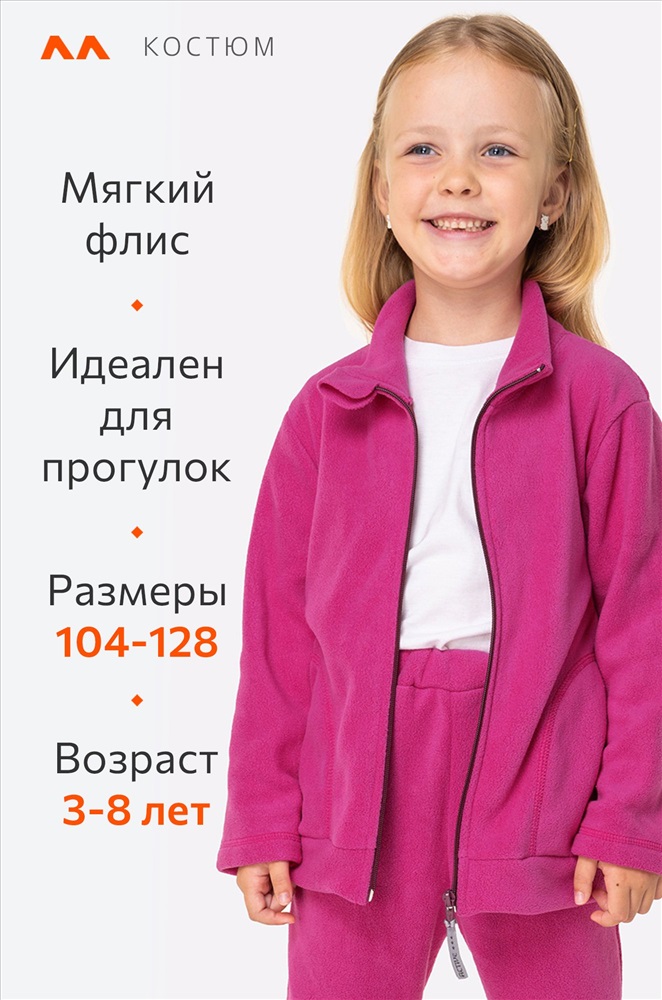 Флисовый детский костюм для девочек – это уют и тепло каждый день. Теплый спортивный костюм цвета фуксия подарит комфорт и свободу движений во время прогулок, игр и отдыха.