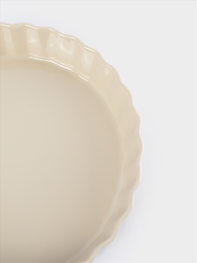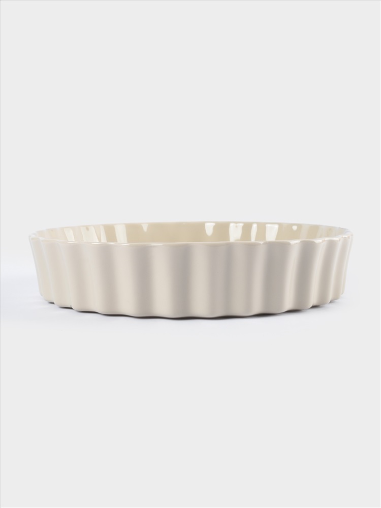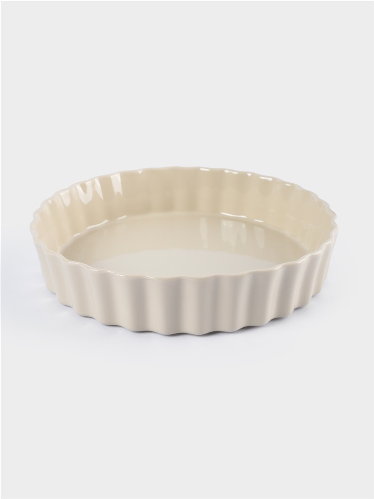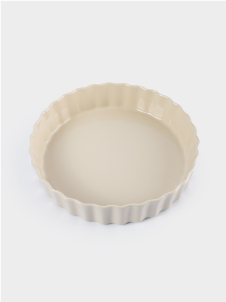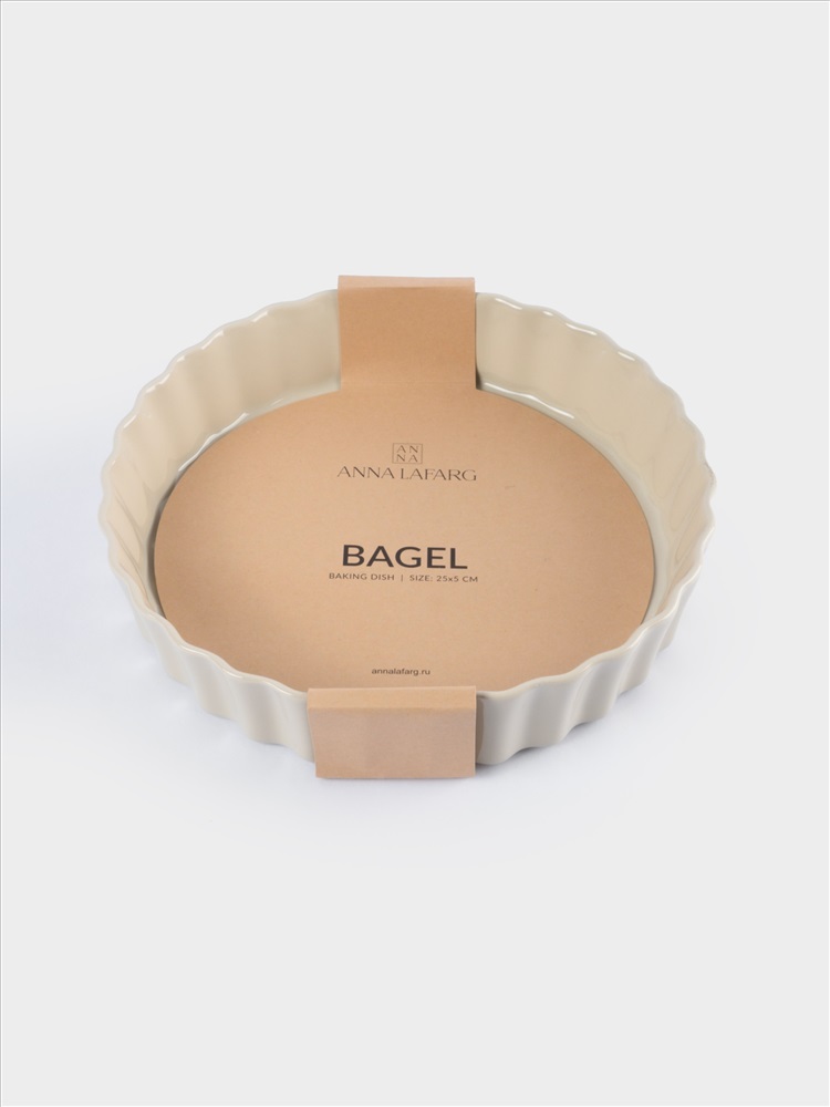 Форма для запекания, 25 см, керамика, круглая, бежевая, Ребристый край, Bagel