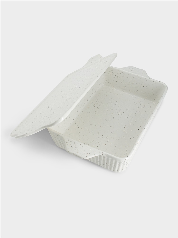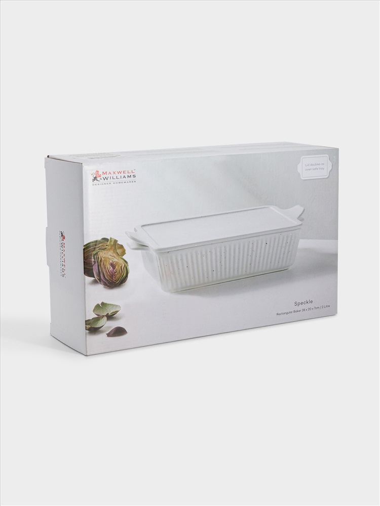 Форма для запекания, 28х20 см, с крышкой, фарфор P, прямоугольная, молочная, в крапинку, Speckle. Материал: фарфор Рorcelain. Мыть тёплой водой с применением жидких моющих средств. Можно использовать в СВЧ, духовке (до 200 градусов), холодильнике и мыть в посудомоечной машине.