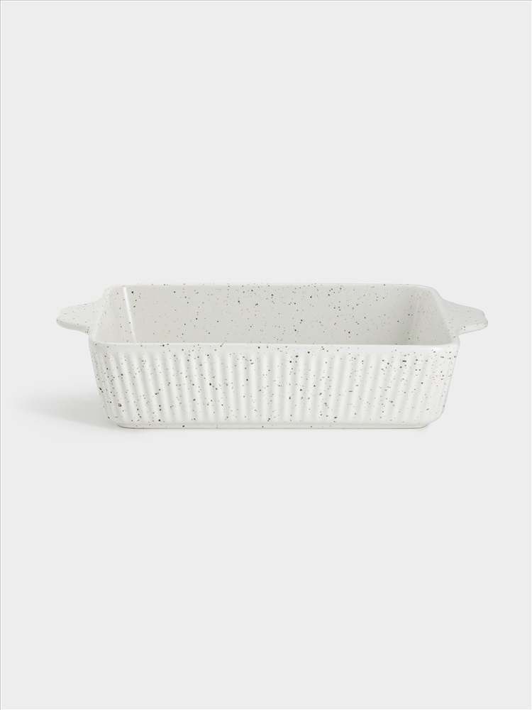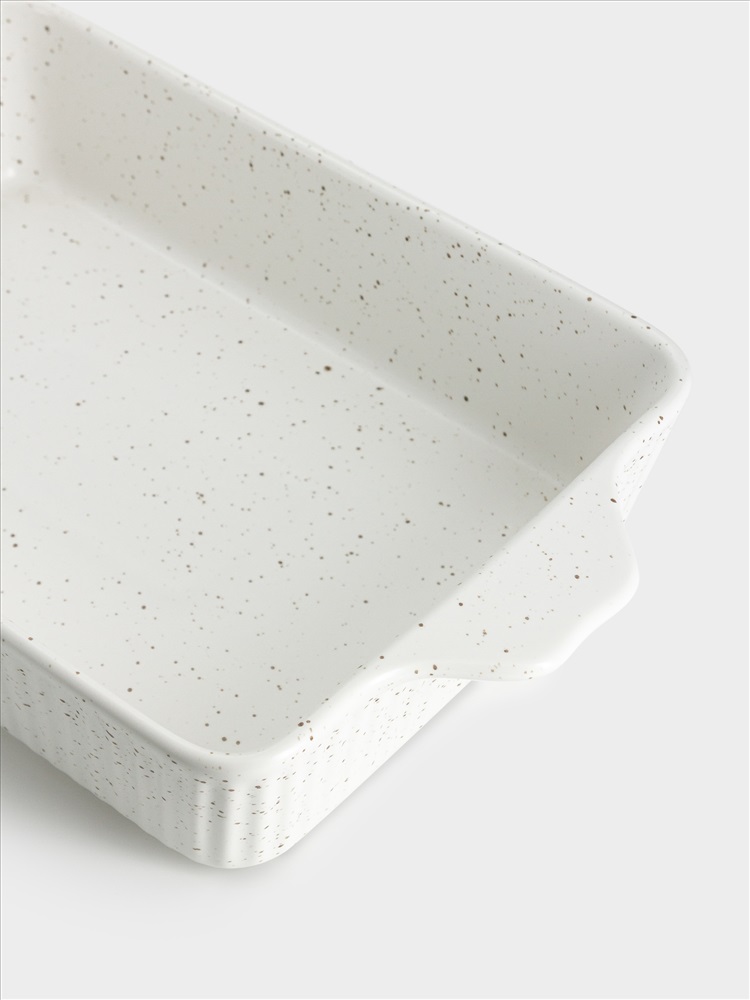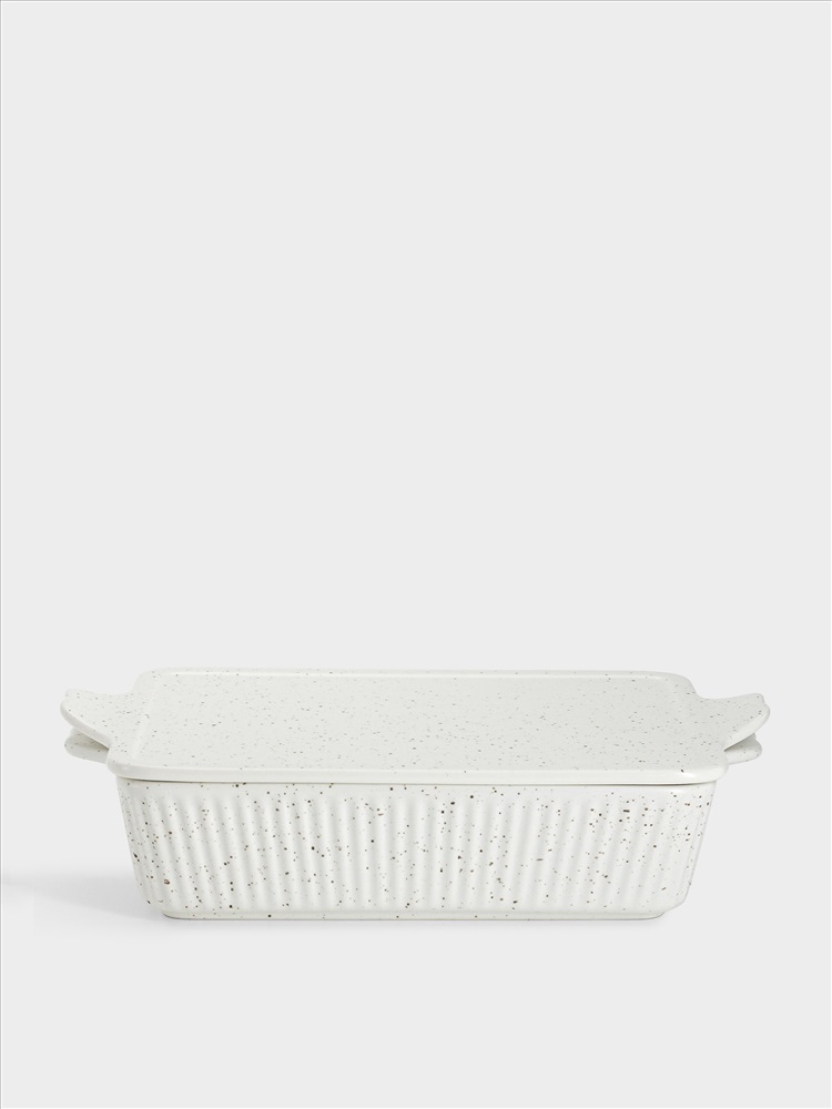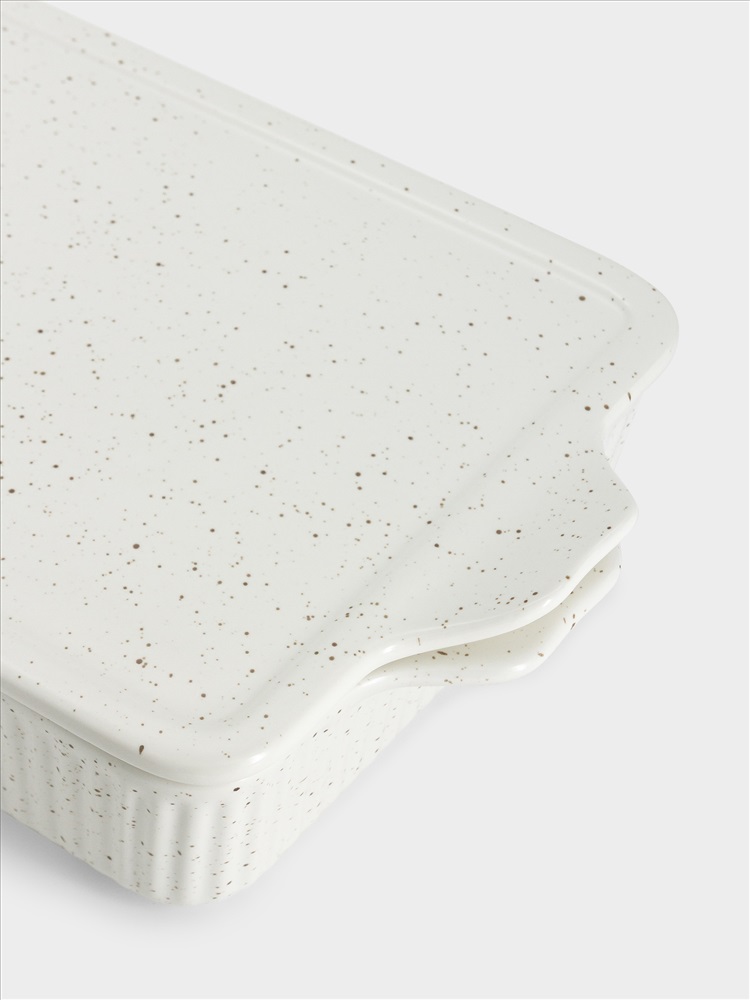 Форма для запекания, 28х20 см, с крышкой, фарфор P, прямоугольная, молочная, в крапинку, Speckle