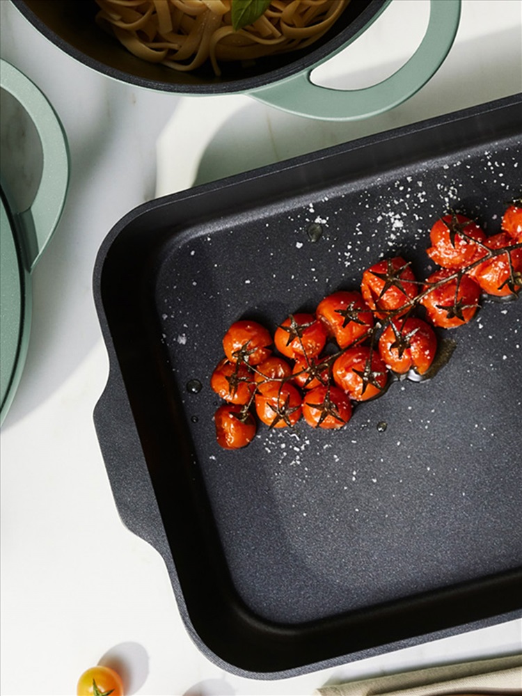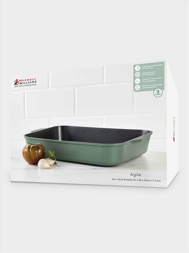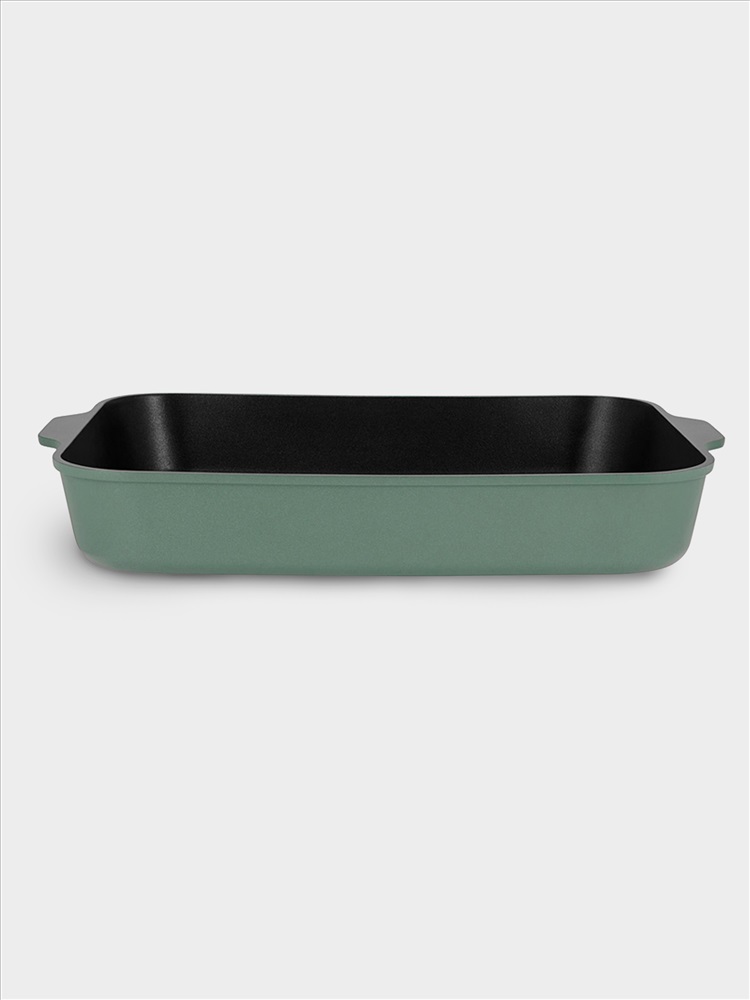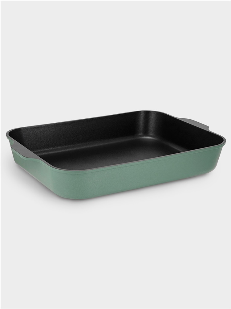 Форма для запекания, 34х26х5,5 см, с покрытием, алюминий, зеленая, Agile. Материал: алюминий (литой) с антипригарным покрытием. Форма для запекания из литого алюминия с антипригарным покрытием. Для всех типов плит, включая индукционные. Можно мыть в ПММ. Использовать в духовке до 210 градусов.