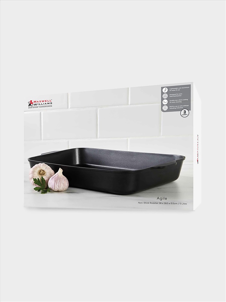Бренд: MAXWELL & WILLIAMS Форма для запекания, 38х28,5х5,5 см, с покрытием, алюминий, черная, Agile. Материал: алюминий (литой) с антипригарным покрытием. Форма для запекания из литого алюминия с антипригарным покрытием. Для всех типов плит, включая индукционные. Можно мыть в ПММ. Использовать в духовке до 210 градусов.