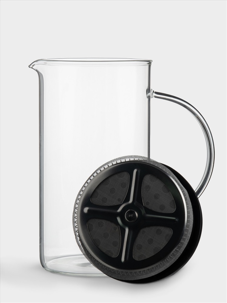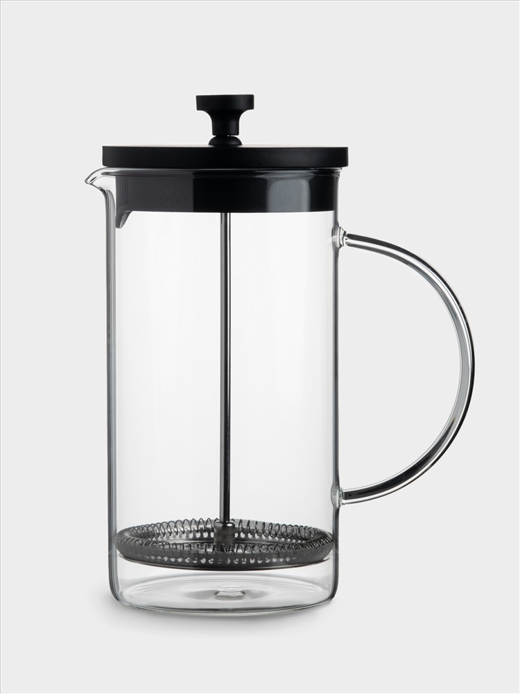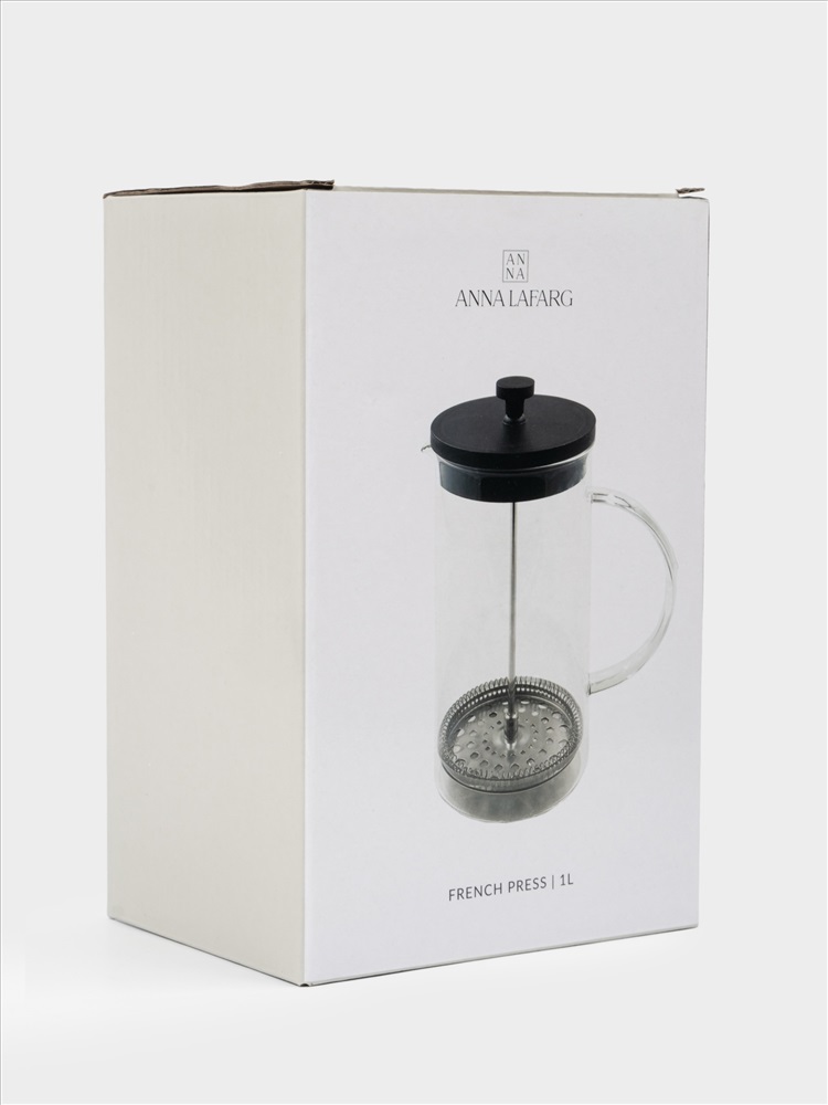 Френч-пресс. Объем: 1 л. Материал: термостойкое стекло, нержавеющая сталь, пластик. Рекомендуется мыть вручную с применением мягких моющих средств. Не применять для ухода абразивные чистящие средства и жесткие губки. Можно мыть в посудомоечной машине на щадящем режиме для стекла.