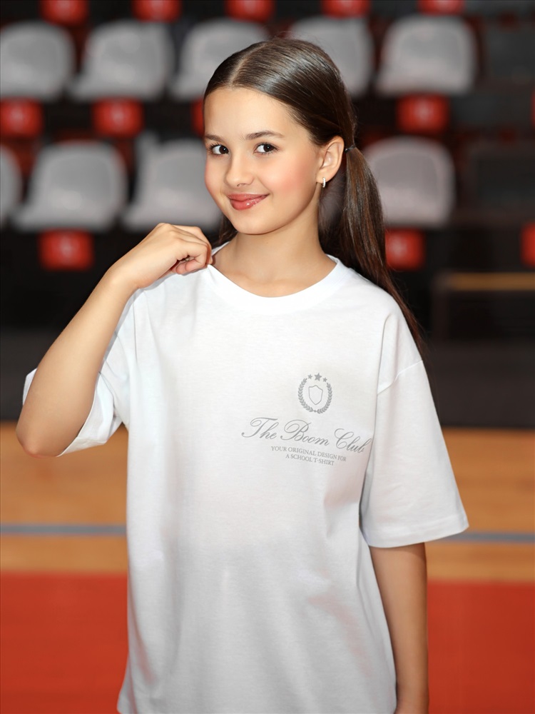 Ткань: Кулирка Кулирка - это самое гладкое и тонкое трикотажное полотно из чистого хлопка. С лицевой стороны ткань «кулирка» выглядит как «вертикальные косички», орнамент изнаночной стороны напоминает «кирпичную кладку». Свойства кулирного трикотажа- воздухопроницаемость, гигроскопичность, не теряя своей формы, практически не тянется в длину и хорошо растягивается в ширину, не образует складки. Футболка для девочки из трикотажного полотна "кулирка" с приспущенным плечом, втачными короткими рукавами, горловиной овальной формы, обработанной втачной планкой и принтом на полочке, выполненным в технике шелкографии. По шву втачивания планки в горловину настрочена отделочная строчка.