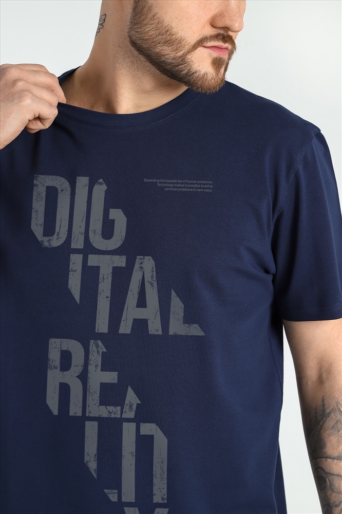 Футболка мужская из гладкокрашеного трикотажного полотна "кулирка" с лайкрой, классическогоь покроя, с коротким втачными рукавами, горловиной овальной формы, обработанной втачной планкой и принтом на полочке, выполненным в технике шелкографии.