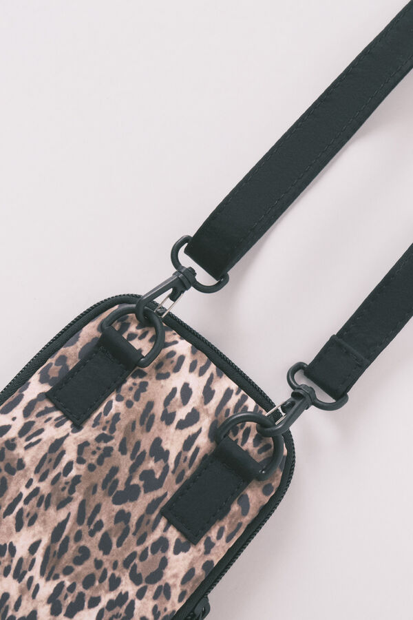 Funda de móvil con doble bolsillo, confeccionada en tejido de nylon súper suave y agradable al tacto de estampado animal print. Llévala a juego con prendas de la colección, y mantén tu estilo en tus looks de calle.