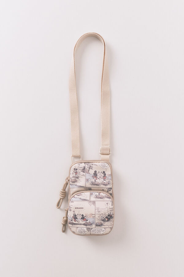 Funda de móvil con doble bolsillo, confeccionada en tejido de nylon acolchado con multi estampado de motivos de Mickey Mouse.