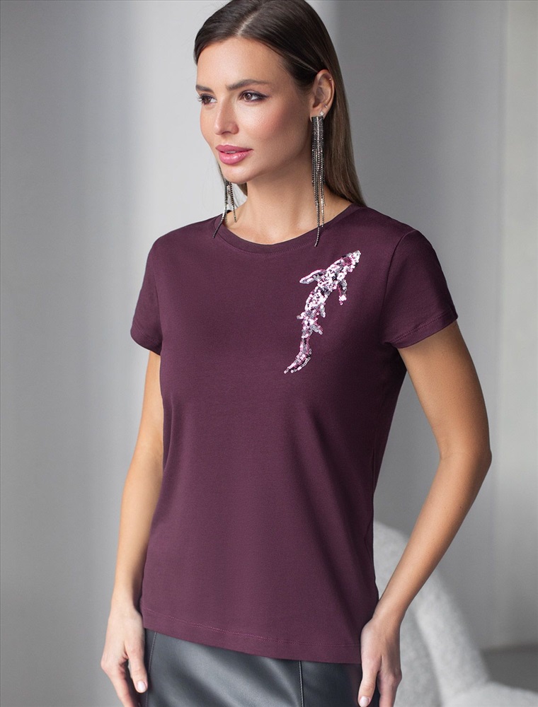 Плотность: 150 Г/м2 Футболка цвета бургунди идеально подходит для вечеринки и создания яркого образа. Оригинальный принт из ярких пайеток в виде рыбки придает изделию шикарный вид, который привлечет внимание на любом мероприятии. Модель с круглым вырезом и классическим коротким рукавом обеспечивает свободу движений и комфорт в носке. Такой фасон изделия подходит на большие размеры, гармонично сидит на фигуре и помогает создать легкий акцент на достоинствах. Аккуратный круглый вырез красиво подчеркивает шею и делает образ элегантным, сохраняя актуальность для разных случаев — от рабочих встреч до вечерних прогулок и праздничных мероприятий. Модель изготовлена из премиального хлопка с добавлением эластана. Добавление эластана в состав изделия способствует формоустойчивости. Эта нарядная футболка подходит для создания образа на каждый день и идеально подойдет на выход. Модель не мнется, что делает ее практичным вариантом для активных женщин, которые ценят стиль и удобство. Женская футболка подчеркнет вашу индивидуальность и позволит вам выглядеть привлекательно в любой ситуации. Легкость в уходе и высокая износостойкость делают ее незаменимой вещью в вашем гардеробе. Благодаря сочному дизайну и качественной отделке, футболка легко сочетается с различными элементами гардероба, позволяя создавать уникальные комплекты для разных случаев. Она станет ярким акцентом в вашем гардеробе и подарит уверенность на любом событии. Такой вариант одежды станет отличной базой для стильного и эффектного образа на праздничное событие, корпоратив, Новый Год. Комментарии к товару