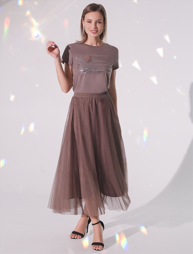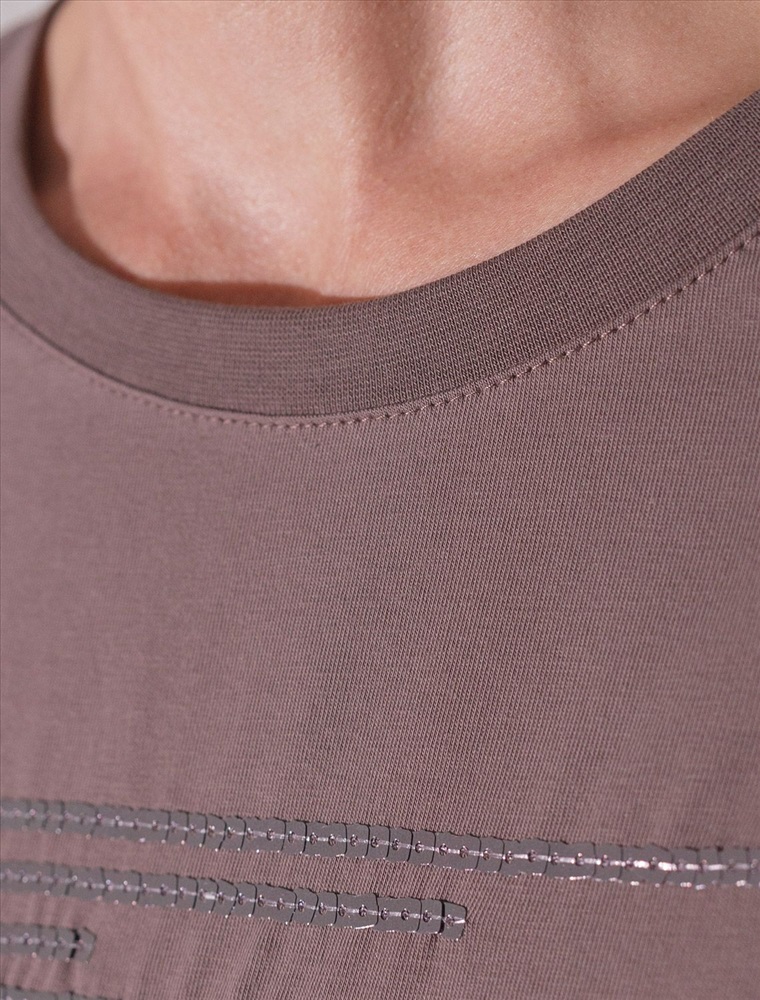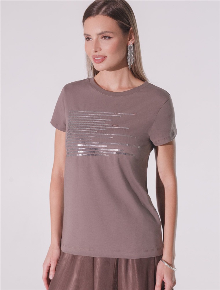 Плотность: 150 Г/м2 Футболка кофейного цвета идеально подходит для вечеринки и создания яркого образа. Оригинальный принт из пайеток придает изделию шикарный вид, который привлечет внимание на любом мероприятии. Модель с круглым вырезом и классическим коротким рукавом обеспечивает свободу движений и комфорт в носке. Такой фасон изделия подходит на большие размеры, гармонично сидит на фигуре и помогает создать легкий акцент на достоинствах. Аккуратный круглый вырез красиво подчеркивает шею и делает образ элегантным, сохраняя актуальность для разных случаев — от рабочих встреч до вечерних прогулок и праздничных мероприятий. Модель изготовлена из премиального хлопка с добавлением эластана. Добавление эластана в состав изделия способствует формоустойчивости. Эта нарядная футболка подходит для создания образа на каждый день и идеально подойдет на выход. Модель не мнется, что делает ее практичным вариантом для активных женщин, которые ценят стиль и удобство. Женская футболка подчеркнет вашу индивидуальность и позволит вам выглядеть привлекательно в любой ситуации. Легкость в уходе и высокая износостойкость делают ее незаменимой вещью в вашем гардеробе. Благодаря сочному дизайну и качественной отделке, футболка легко сочетается с различными элементами гардероба, позволяя создавать уникальные комплекты для разных случаев. Она станет ярким акцентом в вашем гардеробе и подарит уверенность на любом событии. Такой вариант одежды станет отличной базой для стильного и эффектного образа на праздничное событие, корпоратив, Новый Год. Комментарии к товару