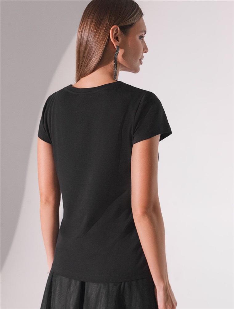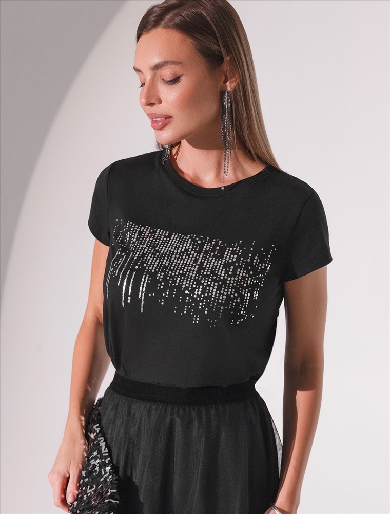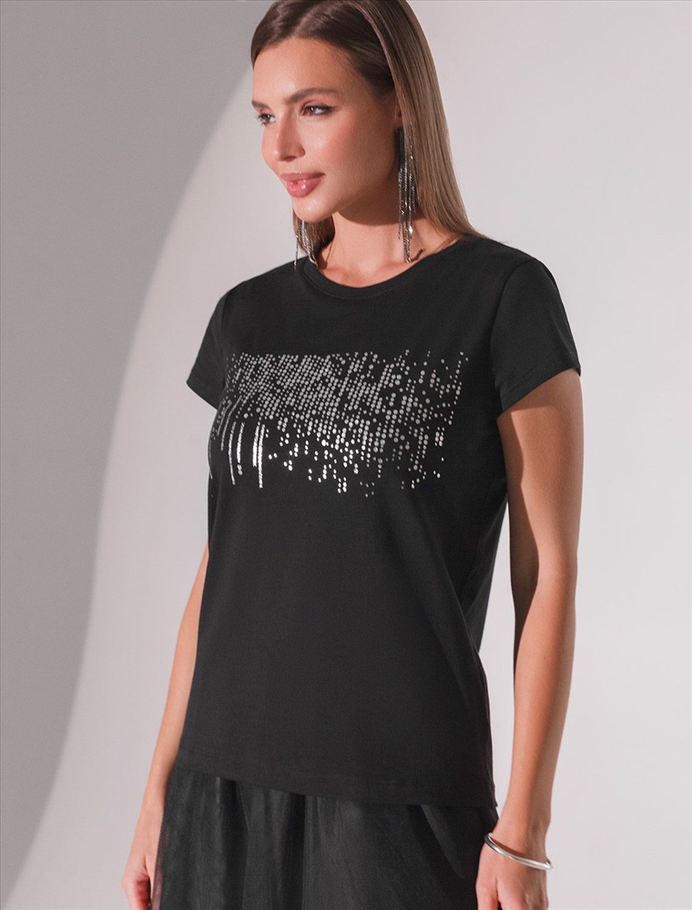 Плотность: 150 Г/м2 Футболка черного цвета идеально подходит для вечеринки и создания яркого образа. Оригинальный блестящий принт из серебристой фольги придает изделию шикарный вид, который привлечет внимание на любом мероприятии. Модель с круглым вырезом и классическим коротким рукавом обеспечивает свободу движений и комфорт в носке. Такой фасон изделия подходит на большие размеры, гармонично сидит на фигуре и помогает создать легкий акцент на достоинствах. Аккуратный круглый вырез красиво подчеркивает шею и делает образ элегантным, сохраняя актуальность для разных случаев — от рабочих встреч до вечерних прогулок и праздничных мероприятий. Модель изготовлена из премиального хлопка с добавлением эластана. Добавление эластана в состав изделия способствует формоустойчивости. Эта нарядная футболка подходит для создания образа на каждый день и идеально подойдет на выход. Модель не мнется, что делает ее практичным вариантом для активных женщин, которые ценят стиль и удобство. Женская футболка подчеркнет вашу индивидуальность и позволит вам выглядеть привлекательно в любой ситуации. Легкость в уходе и высокая износостойкость делают ее незаменимой вещью в вашем гардеробе. Благодаря сочному дизайну и качественной отделке, футболка легко сочетается с различными элементами гардероба, позволяя создавать уникальные комплекты для разных случаев. Она станет ярким акцентом в вашем гардеробе и подарит уверенность на любом событии. Такой вариант одежды станет отличной базой для стильного и эффектного образа на праздничное событие, корпоратив, Новый Год. Комментарии к товару