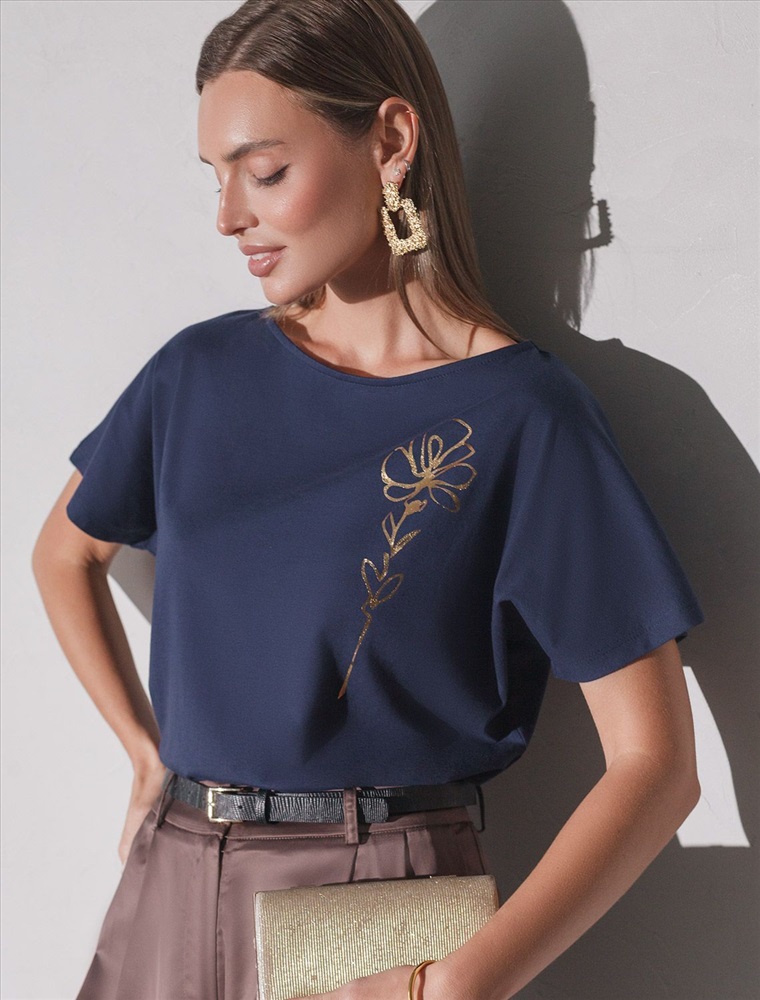 Плотность: 150 Г/м2 Футболка темно-синего цвета идеально подходит для вечеринки и создания яркого образа. Оригинальный блестящий принт из фольги в виде цветка придает изделию шикарный вид, который привлечет внимание на любом мероприятии. Модель с вырезом лодочка и цельнокроеным рукавом обеспечивает свободу движений и комфорт в носке. Такой фасон изделия подходит на большие размеры, гармонично сидит на фигуре и помогает создать легкий акцент на достоинствах. Благодаря особенностям кроя с цельнокроеным рукавом удается искусно скроет любые возможные недостатки в области плеч и рук, обеспечивая комфортное прилегание без ощущения скованности. Аккуратный вырез лодочка красиво подчеркивает шею и делает образ элегантным, сохраняя актуальность для разных случаев — от рабочих встреч до вечерних прогулок и праздничных мероприятий. Модель изготовлена из премиального хлопка с добавлением эластана. Добавление эластана в состав изделия способствует формоустойчивости. Эта нарядная футболка подходит для создания образа на каждый день и идеально подойдет на выход. Модель не мнется, что делает ее практичным вариантом для активных женщин, которые ценят стиль и удобство. Женская футболка подчеркнет вашу индивидуальность и позволит вам выглядеть привлекательно в любой ситуации. Легкость в уходе и высокая износостойкость делают ее незаменимой вещью в вашем гардеробе. Благодаря сочному дизайну и качественной отделке, футболка легко сочетается с различными элементами гардероба, позволяя создавать уникальные комплекты для разных случаев. Она станет ярким акцентом в вашем гардеробе и подарит уверенность на любом событии. Такой вариант одежды станет отличной базой для стильного и эффектного образа на праздничное событие, корпоратив, Новый Год. Комментарии к товару